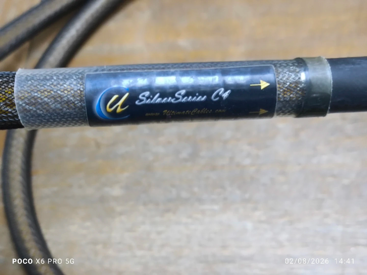 High-end audio cables from Ultimate Cables, Silver Series C4 model. Features a braided shield and durable connectors. Ideal for audiophiles seeking clear sound.
