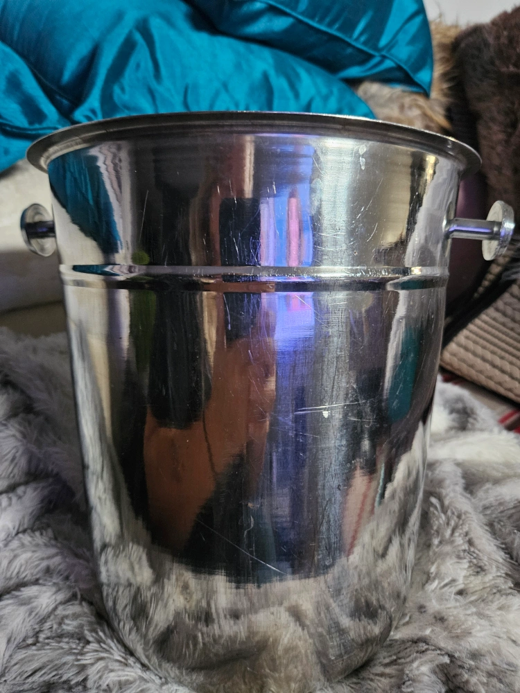 Selling 2 stainless steel ice buckets. Marked as OBO and made of stainless steel in Korea. Used for garden parties and picnics. Scratching on exterior. 10" high and 8" diameter opening. $10 each one. Can be sold separately.