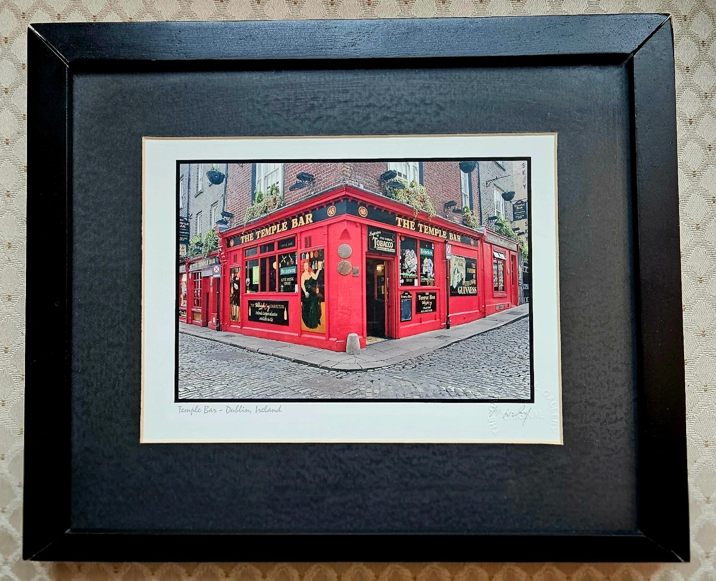 This framed print captures the iconic red exterior of The Temple Bar in Dublin, Ireland. It's a lovely piece of wall art for any pub enthusiast or traveller. The print is ready to hang.