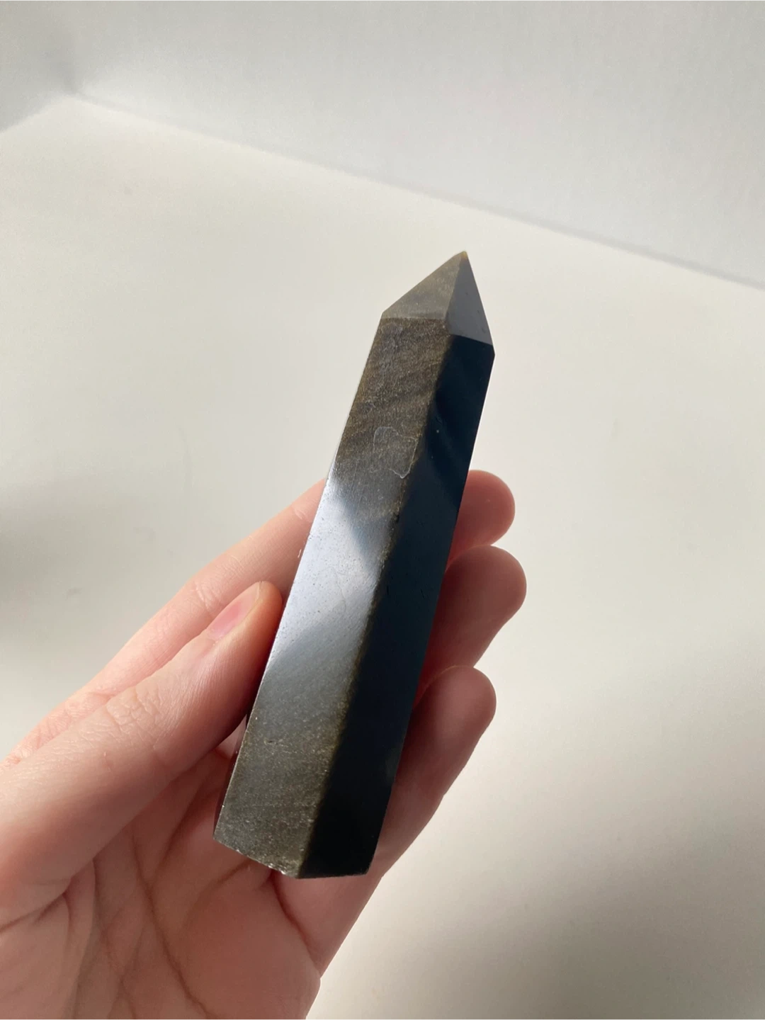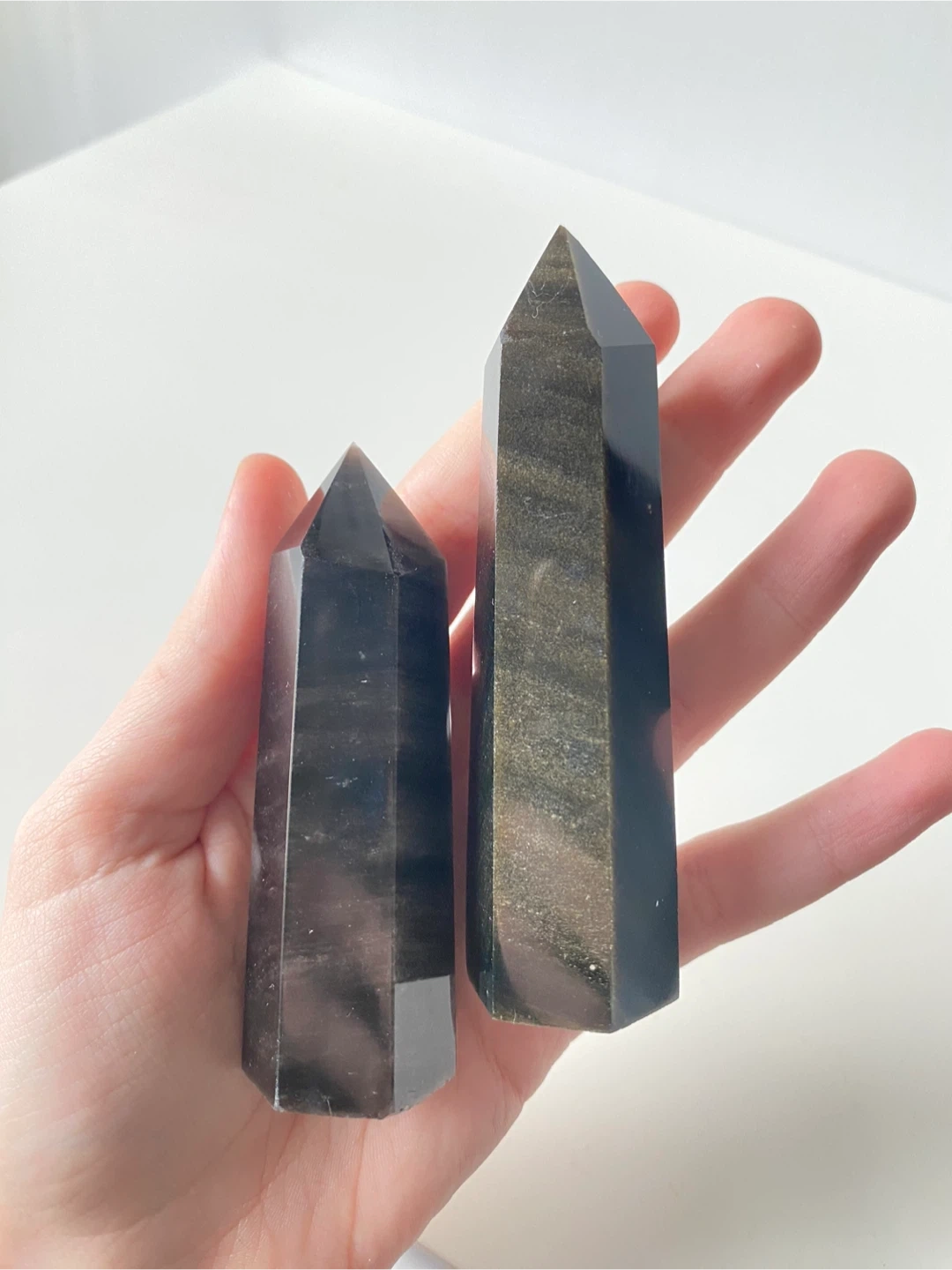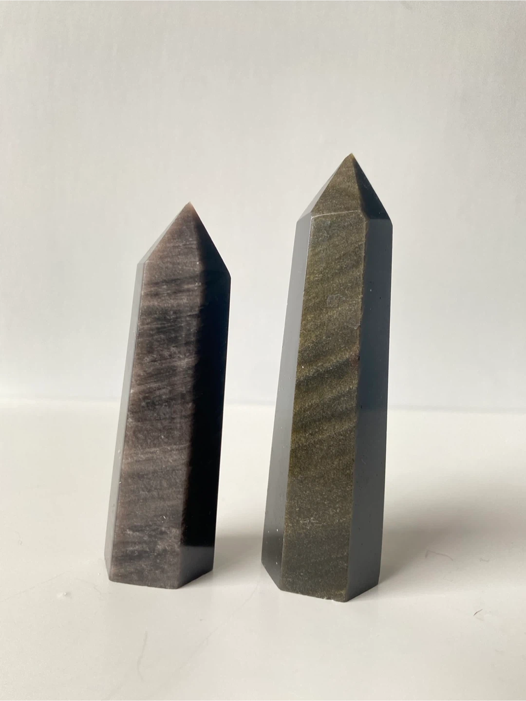 31Price Vary Below Silver- 3.50” tall and 78g $18 Gold- 4” tall and 95g $20 Black Obsidian Stone is a powerful cleanser of psychic smog created within your aura, and is a strong psychic protection stone.