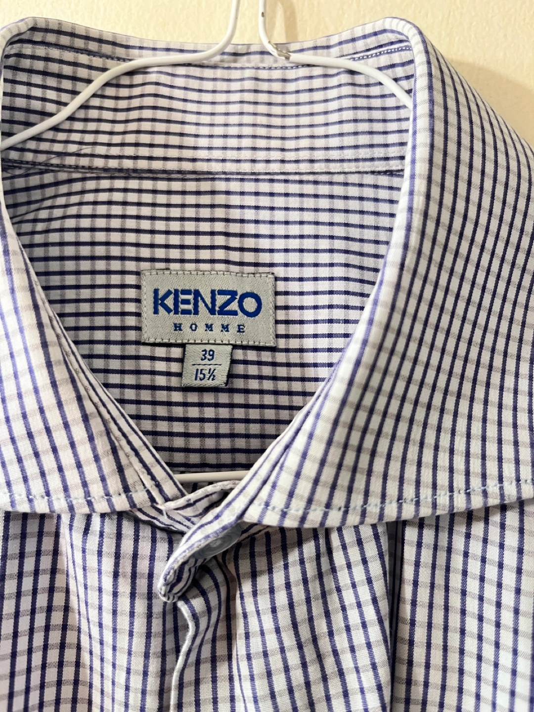 Here's a stylish Kenzo Homme dress shirt in a classic checkered pattern. It's a size 15½ and would be a great addition to your wardrobe. The shirt is in good condition and ready for a new home!