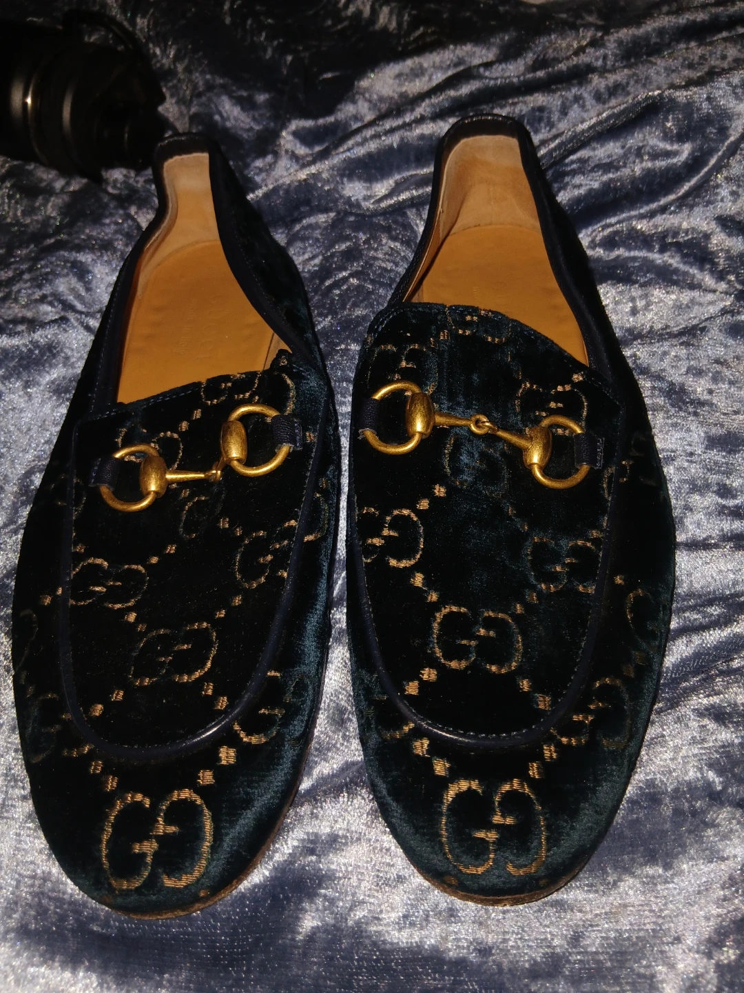 Gucci Velvet Loafers - Green GG Monogram mens size 9