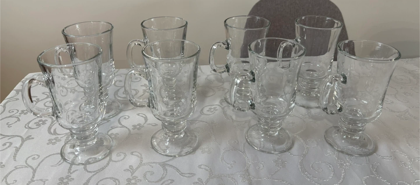 Set of 8 Glass Irish Coffee Mugs with Handles