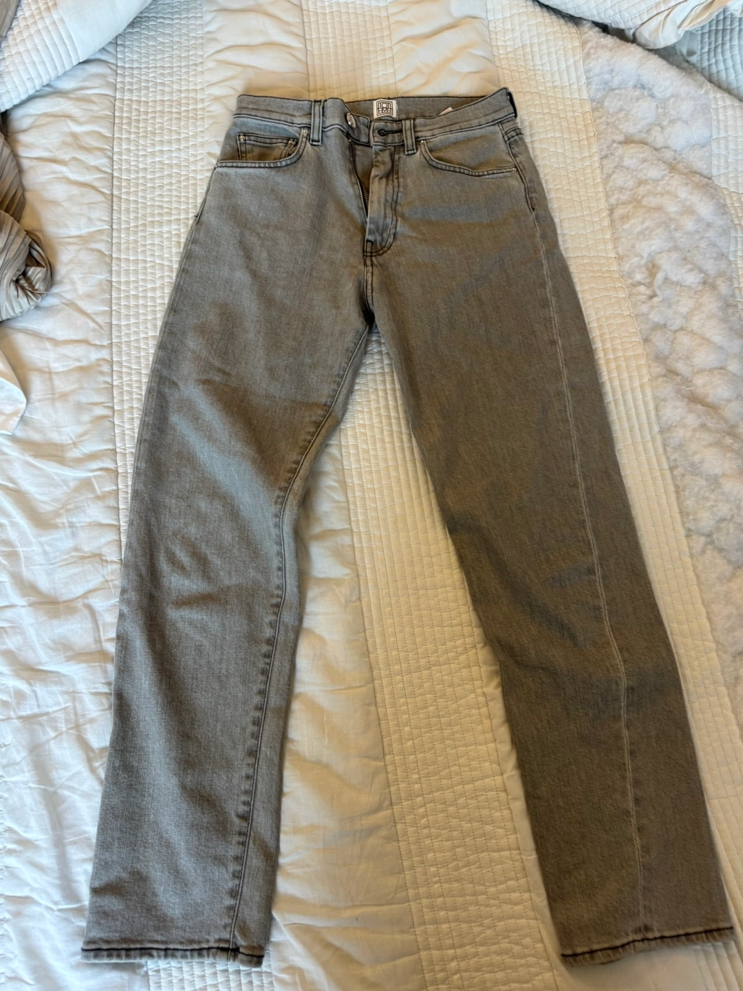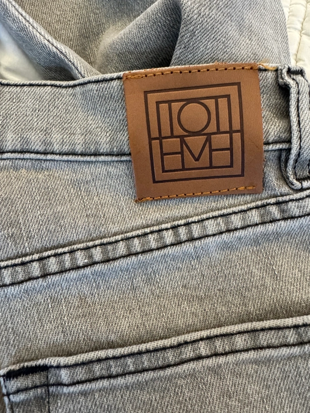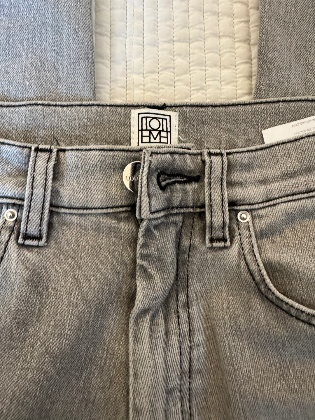 Selling a pair of Toteme jeans in size 25/32. They are a stylish light gray color and in good condition. The jeans are made in Italy and feature a classic design. Perfect for adding a touch of sophistication to your wardrobe!