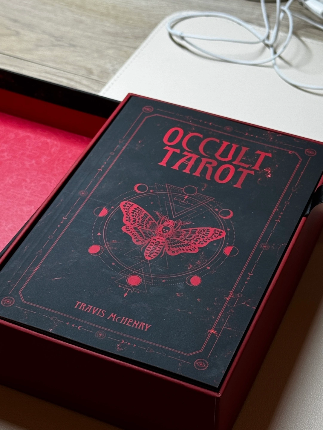 65Brand new, Occult Tarot deck by Travis McHenry. Includes guidebook. Red box, dark aesthetic. Collector's item.