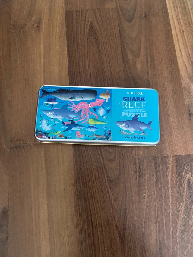 156Dive into learning with this vibrant Crocodile Creek Shark Reef puzzle! This gently used 50-piece puzzle, perfect for ages 4+, is in great condition and comes in its original tin. It's a wonderful way to engage your child's mind while exploring the wonders of the ocean. * Brand: Crocodile Creek * Theme: Shark Reef * Number of Pieces: 50 * Recommended Age: 4+