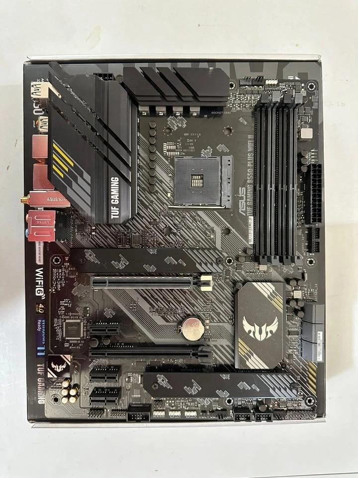 Selling an ASUS Tuf Gaming B550 Plus Wifi II AM4 motherboard. Gently used. Compatible with AMD Ryzen processors. Has everything but the SATA cables. Selling because I'm leaving the country soon. Price is firm.