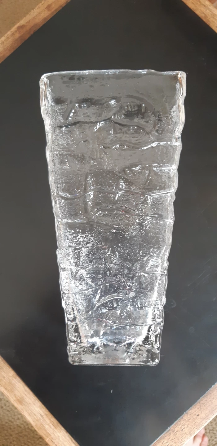 This is a vintage Scandinavian textured glass vase.