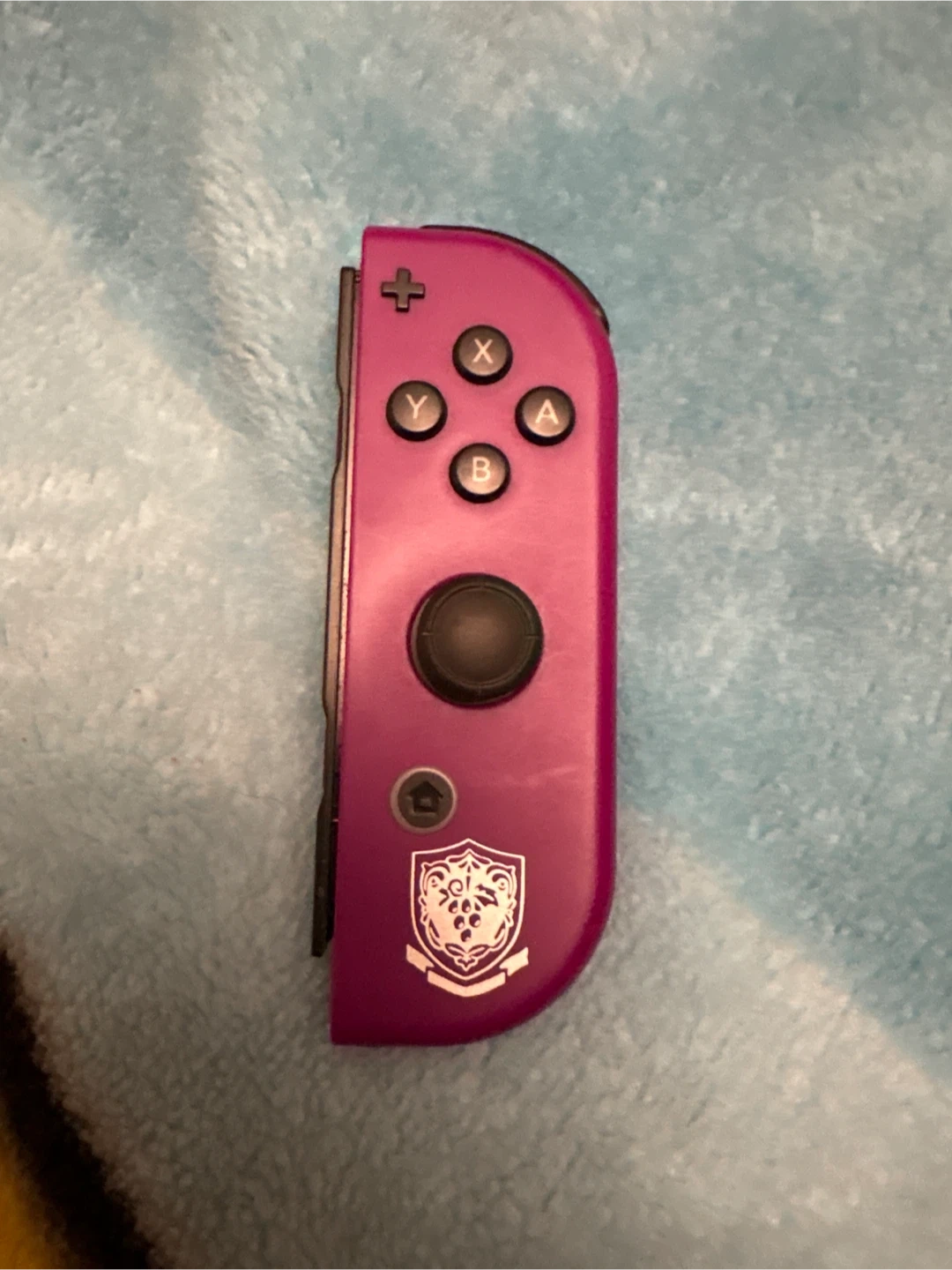 This is a single purple Right Nintendo Switch Joy-Con controller. It has the standard button layout including a joystick, A, B, X, and Y buttons, and a plus button.