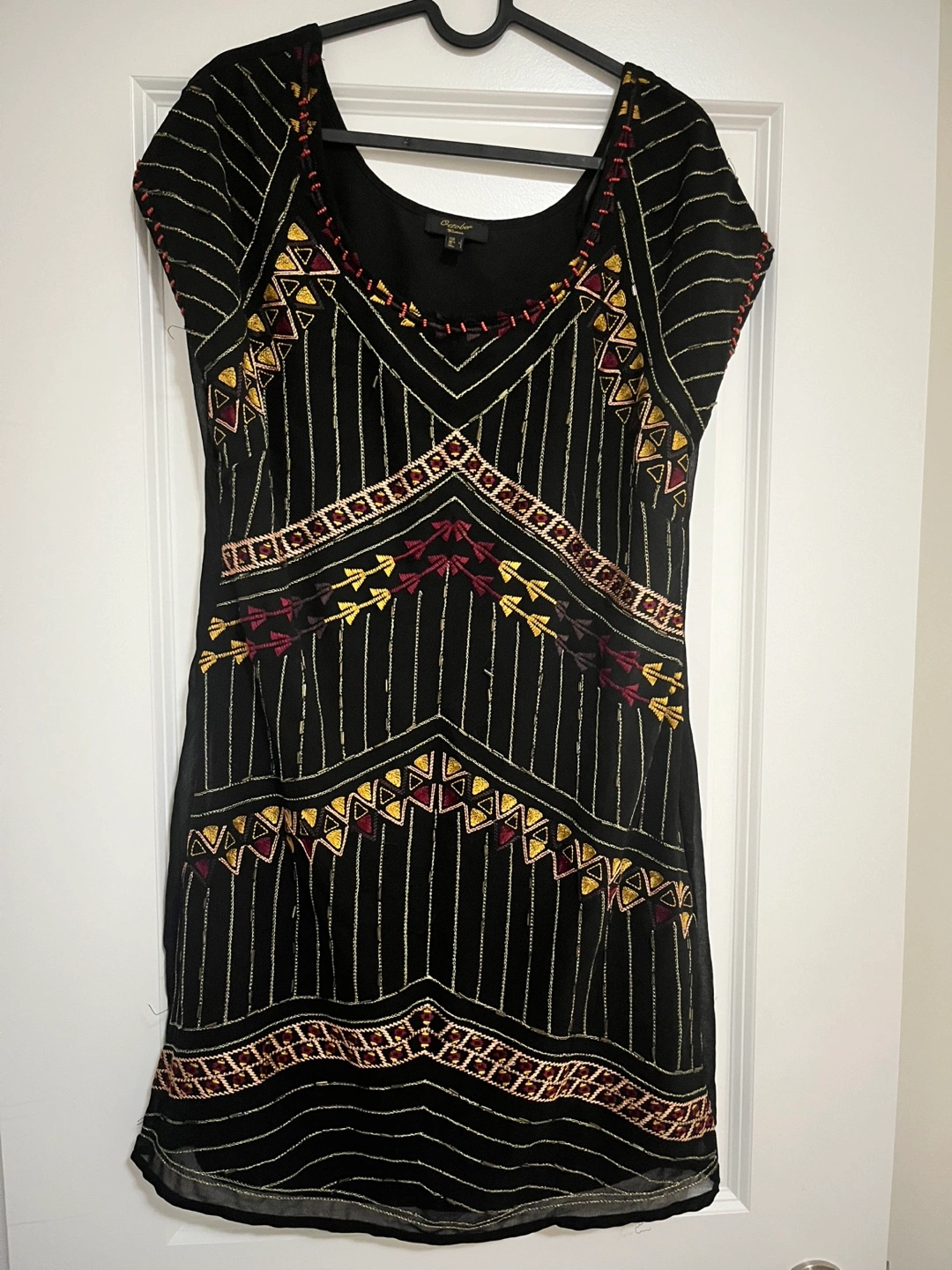 Selling a cute October Woman dress in size small! It's a stylish black dress with some lovely detailing. Perfect for a night out or a special occasion!