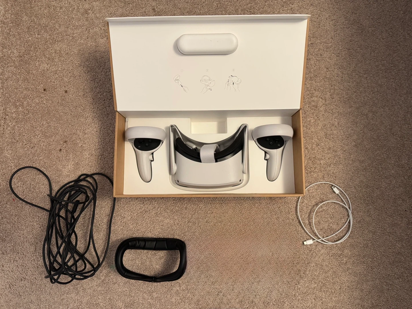 Selling an Oculus Quest 2 VR headset with 256GB of storage. It comes with the controllers, original box, extra face rest, and a link cable for easy connection to a PC. There's a small crack on the face rest hence a third party one is included. Great for immersive gaming and comes with more storage space than other models. No lowball offers Price is FIRM Cash Only