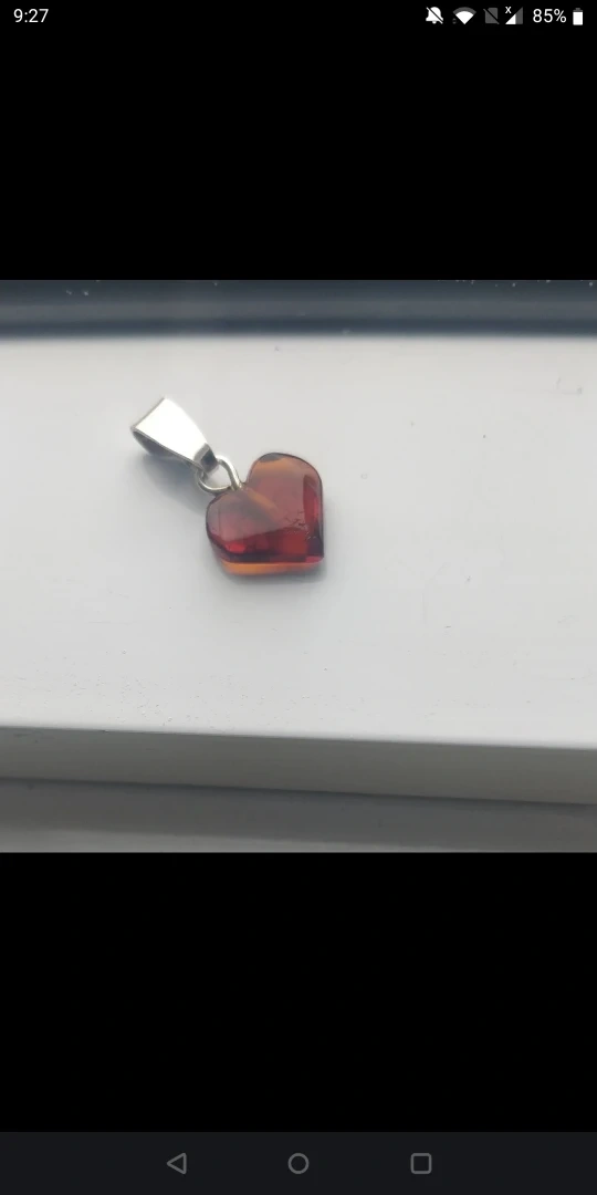 This is a lovely heart-shaped pendant with an amber-coloured stone. It features a silver-tone bail for attaching to a chain. It's a sweet accessory for everyday wear.