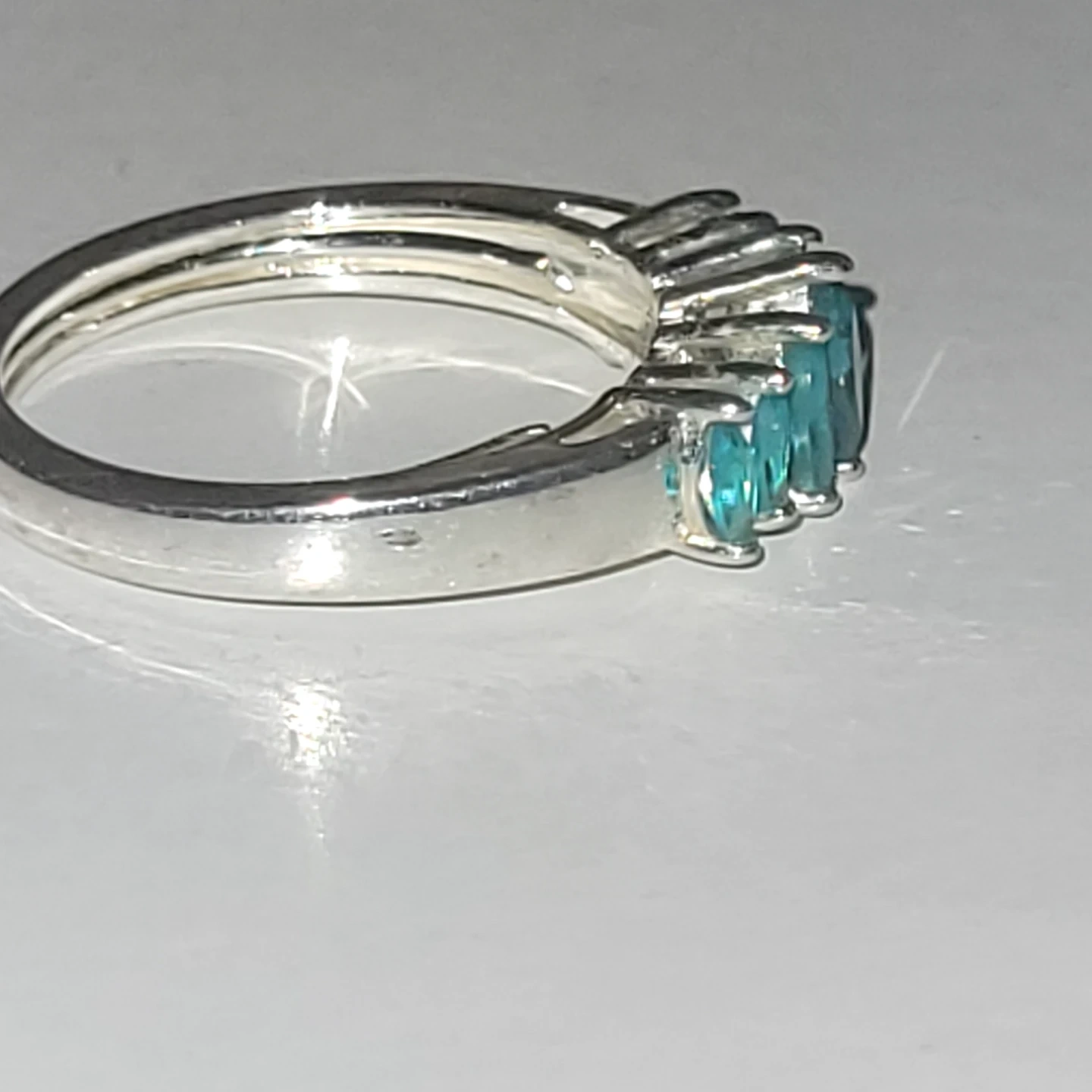 Sterling Silver Ring with BlueGreen Marquise Stones -size 7.5