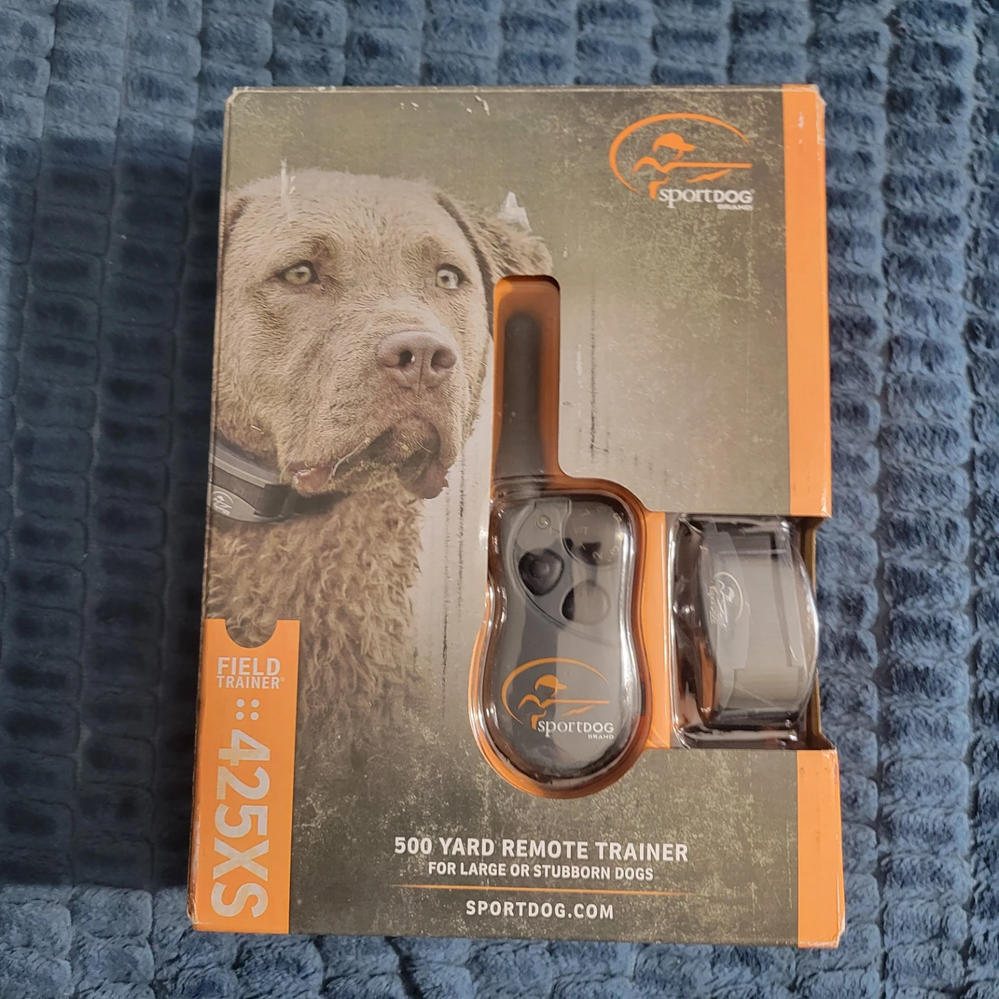 This is a SportDOG Field Trainer 425XS remote trainer. It's designed for large or stubborn dogs and has a 500-yard range. The unit is in its original packaging.