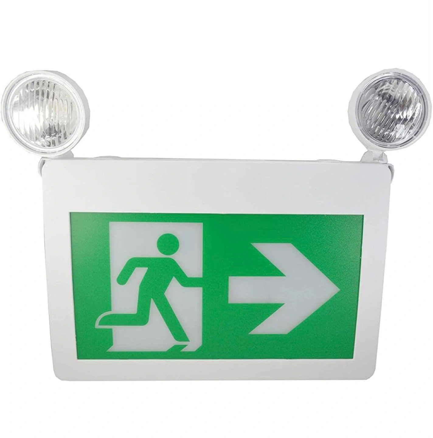 Exit Sign Running Man Thermoplastic Sign Combo Emergency Light LED with 2 Heads*LED 2W x 2, Left Right Battery Backup for 120 Minutes 120v/347v Universal