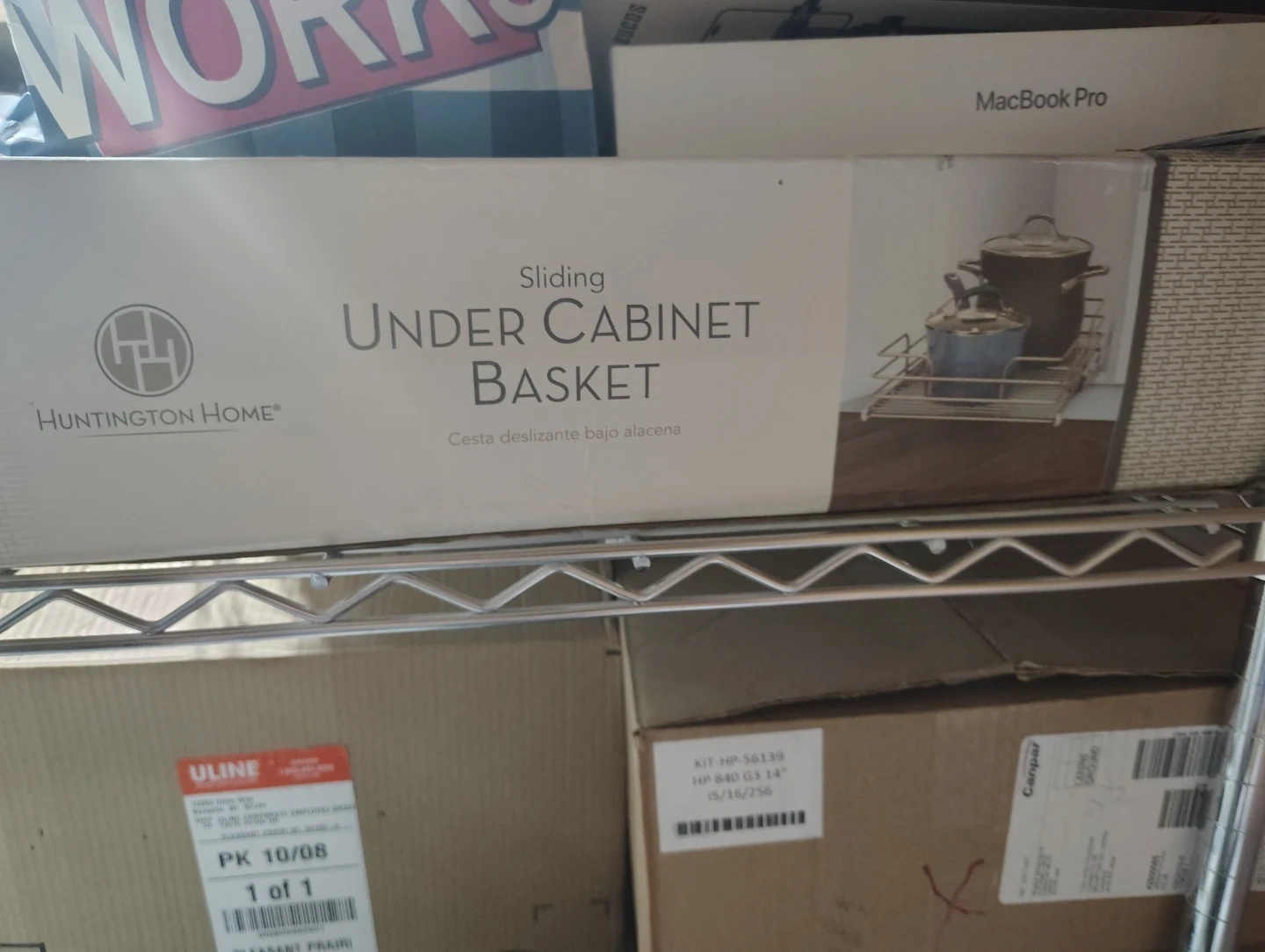 This Huntington Home sliding under cabinet basket offers convenient storage. It's designed to fit under your cabinets, keeping kitchen essentials tidy. And it is never opened just collecting dust on the shelf