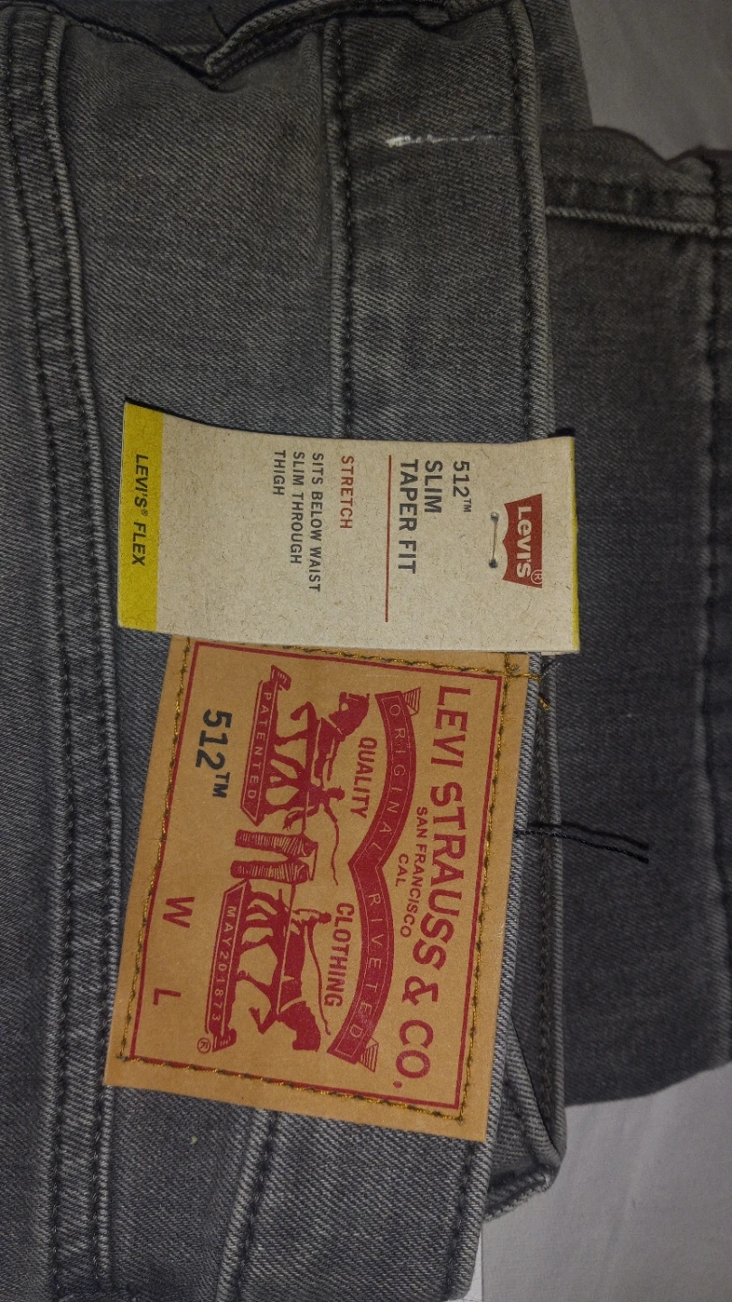 Levi's 512 jeans in a slim taper fit. Stretch denim allows for comfort and ease of movement. These jeans are grey and size W L. Perfect for everyday wear! Size 40x32 Mens