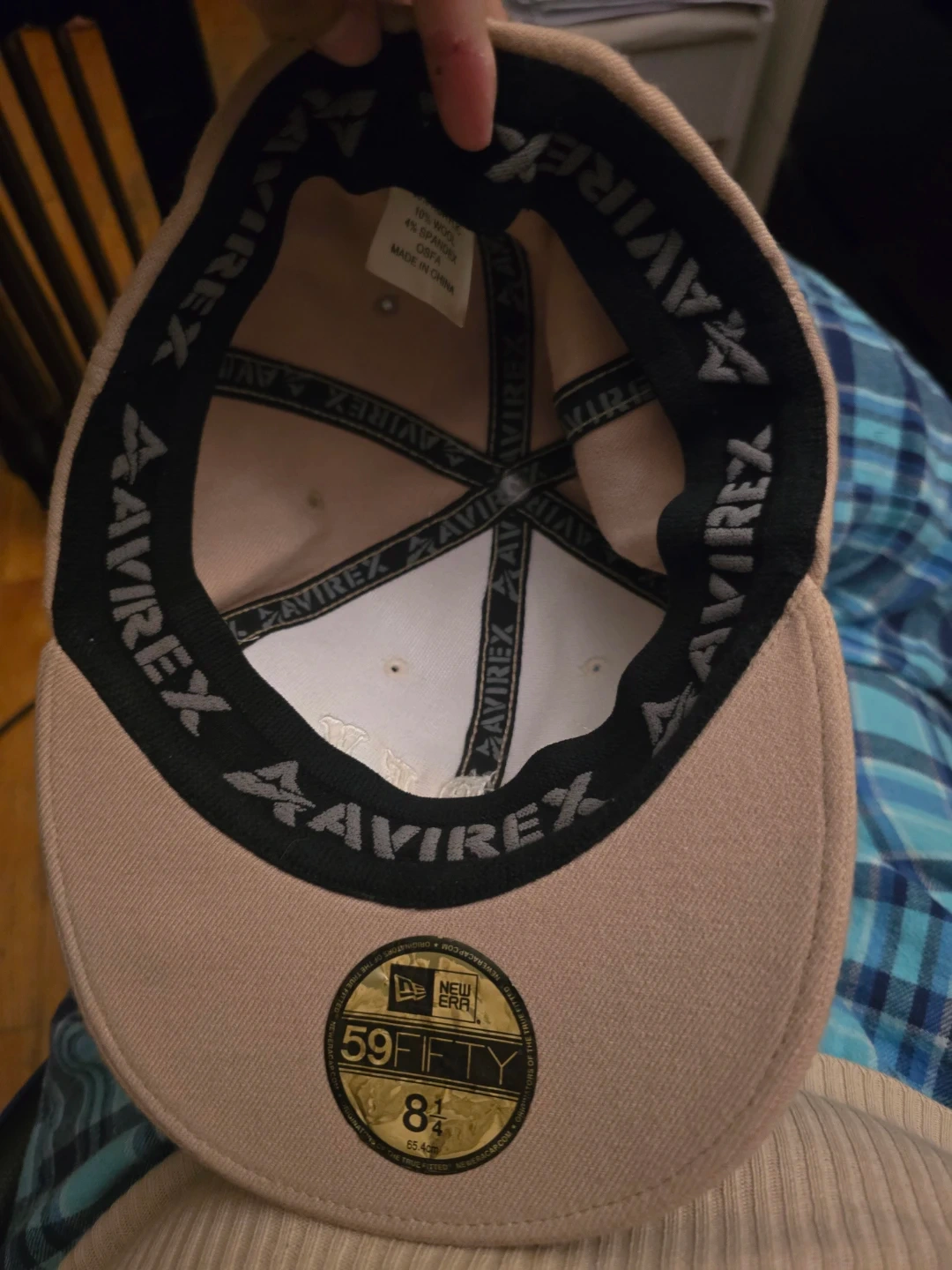 Avirex New Era 59FIFTY baseball cap! The size is 8 1/4. Beige and white color scheme with red accents.
