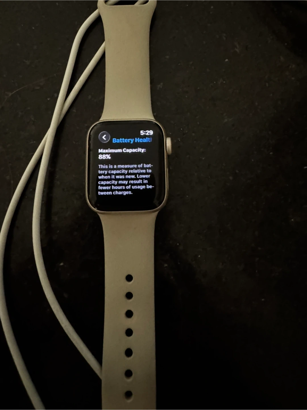 Apple Watch SE 2 in excellent condition. It's a fantastic smartwatch with a vibrant display and useful health features. The battery capacity is currently at 88%. Includes original charger. No scratches.