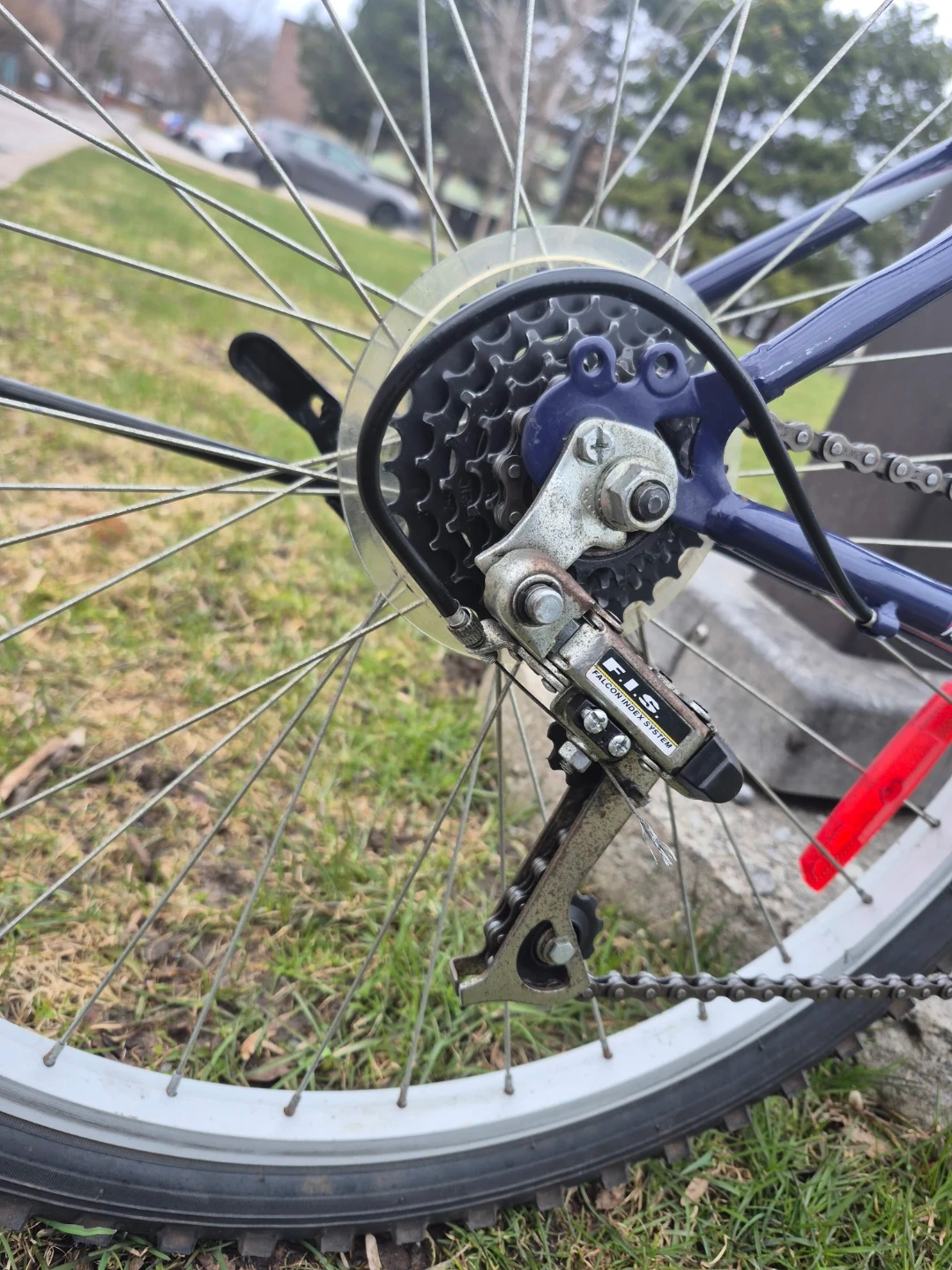 26x1.95 tires and a Sunrun derailleur. This bike is ready for trails or city riding!