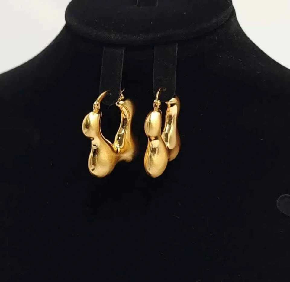 Style: chunky, sculptural statement hoops with organic, fluid silhouette