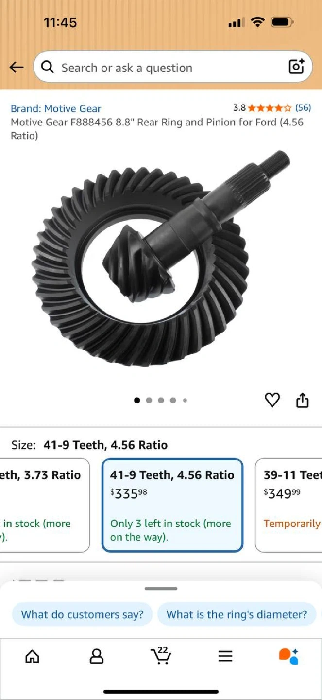🚗 Motive Gear 8.8 Rear Ring and Pinion 4.56 Ratio (Ford) – NEW