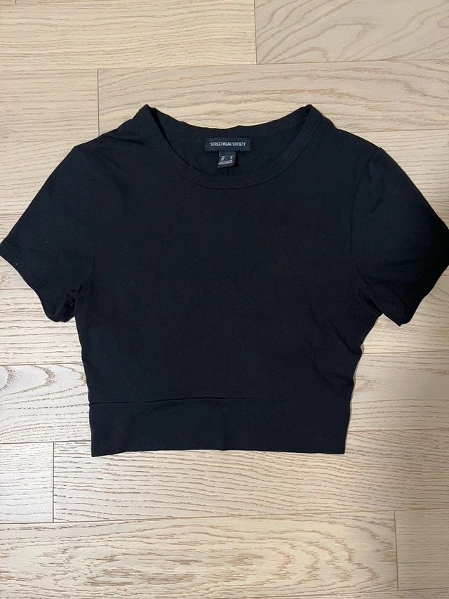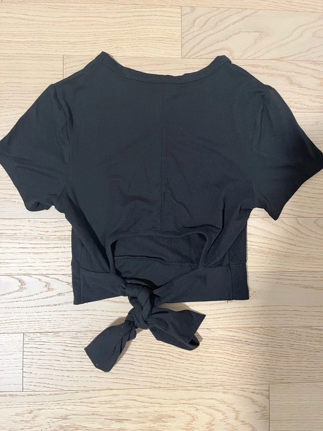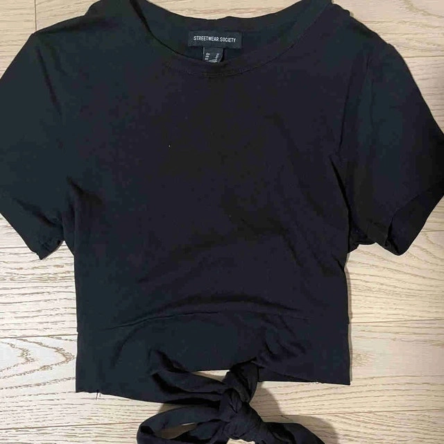 1. Cropped, black, open back bow t-shirt (streetwear society) ($15).