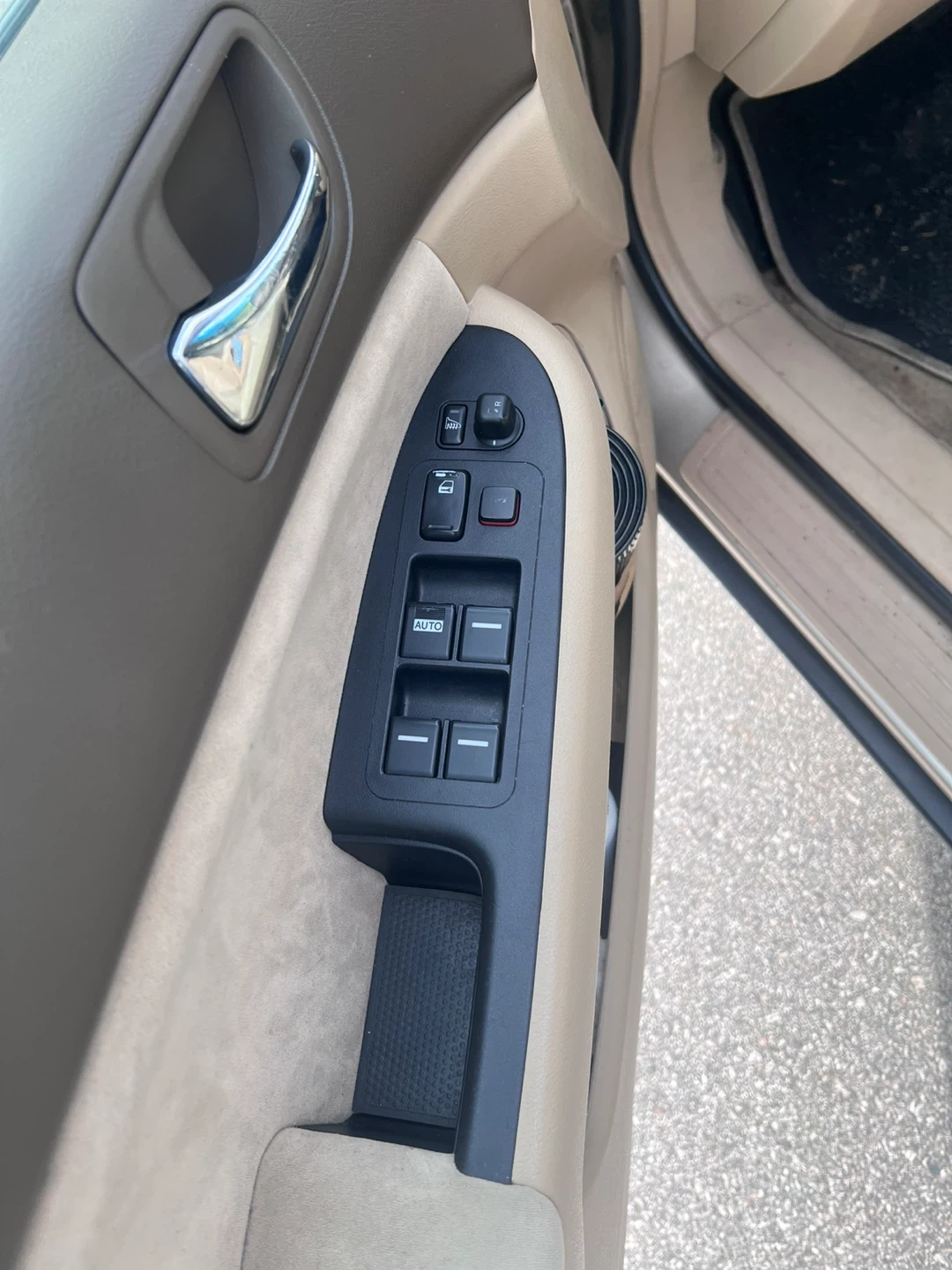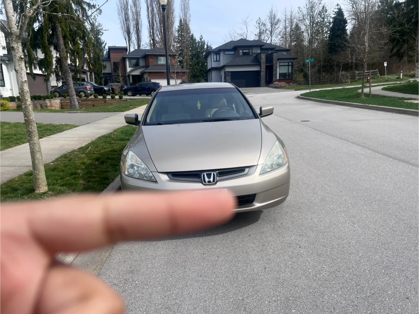 Gold Honda Accord sedan. Four doors with a spacious interior. Seats are a light tan fabric. With just 148k kms on that
