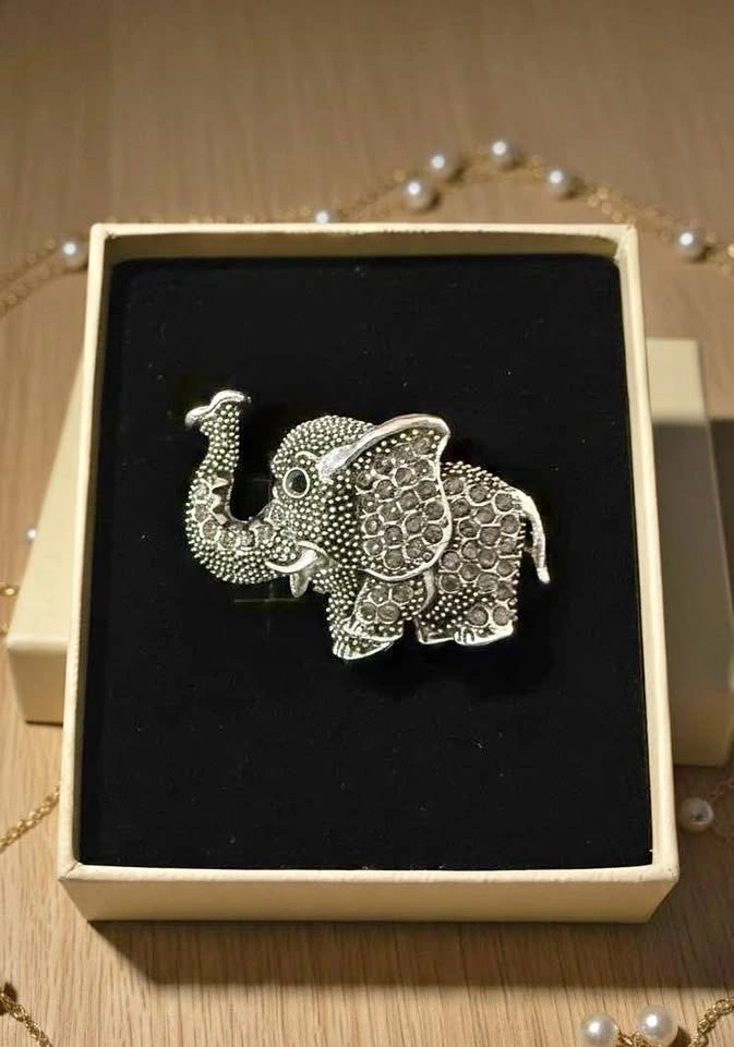 Elevate your accessory game with this stunning silver-tone elephant brooch. This is a high-quality, substantial piece featuring a "Royal Elephant" design with its trunk raised for good luck.