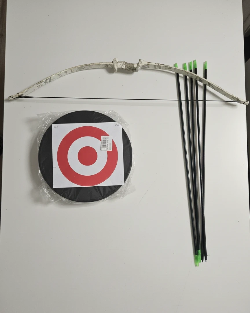 Selling a complete archery set! It includes a bow, arrows, and a target. Everything is in great condition and ready for some fun practice