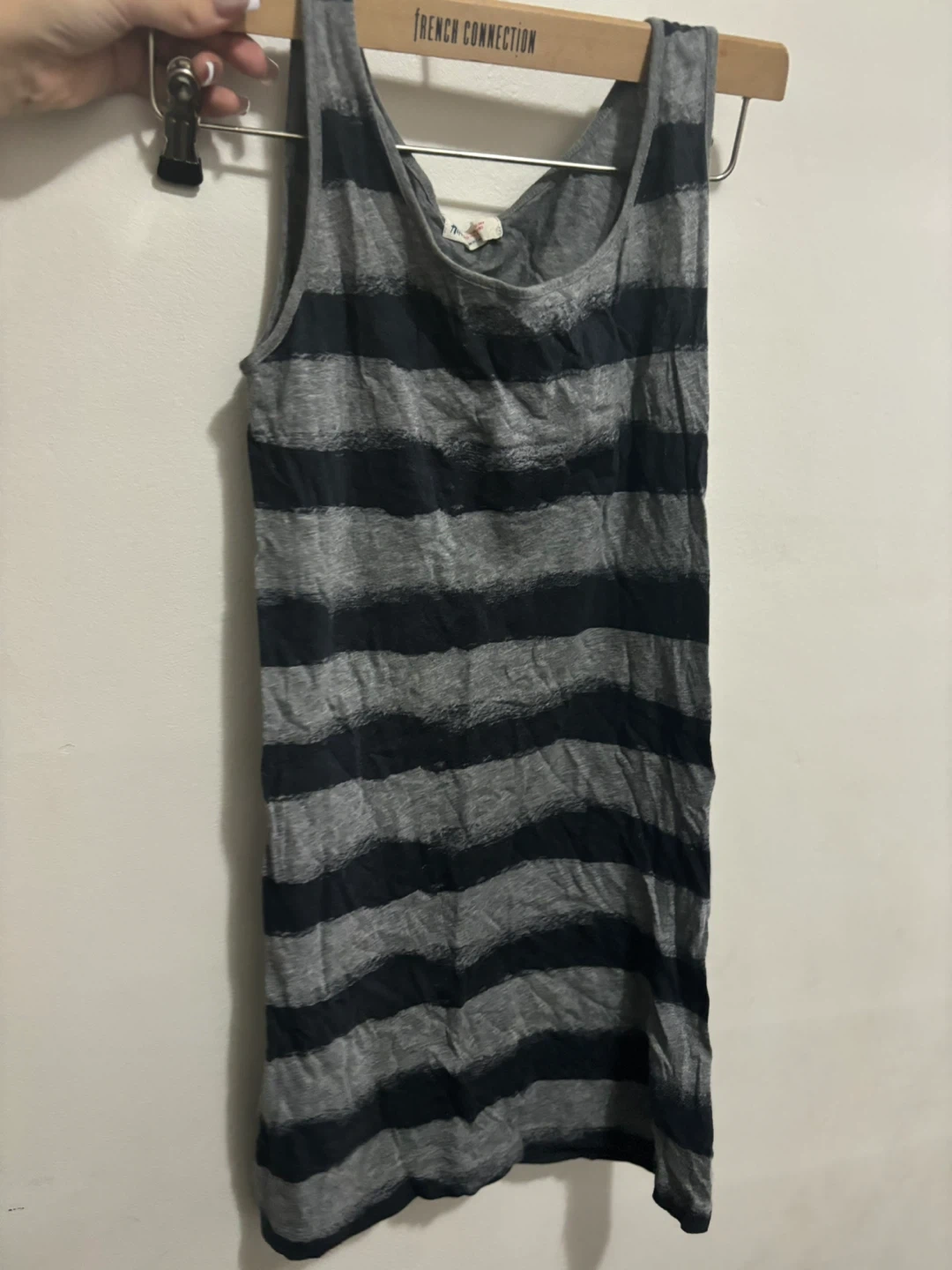 Comfortable grey and black striped tank top. Made from a soft, breathable fabric. Casual and easy to wear for everyday outings!
