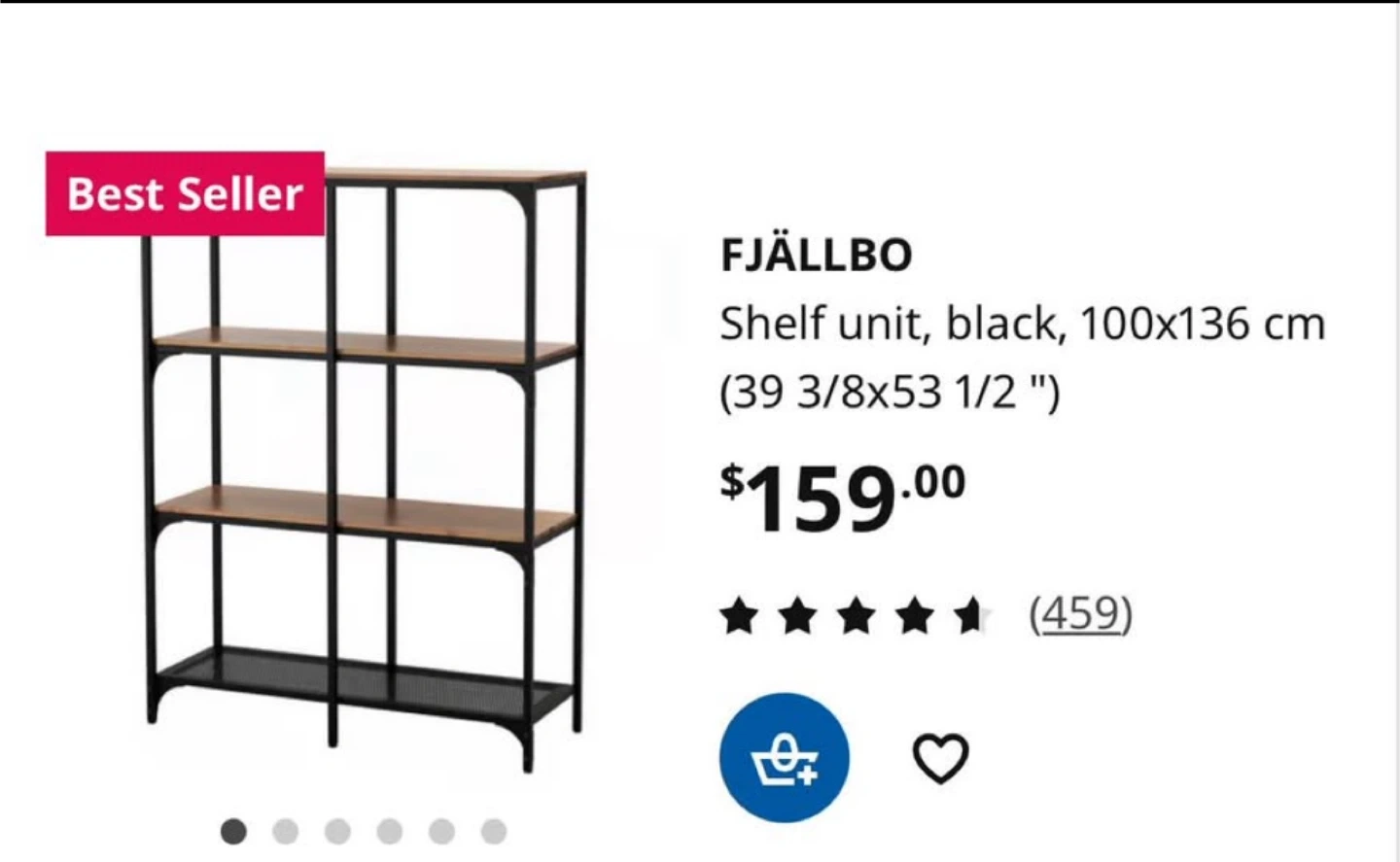 Selling a FJÄLLBO shelf unit from IKEA! It's black and measures 100x136 cm. It’s in great shape and ready for a new home. Originally bought for $159