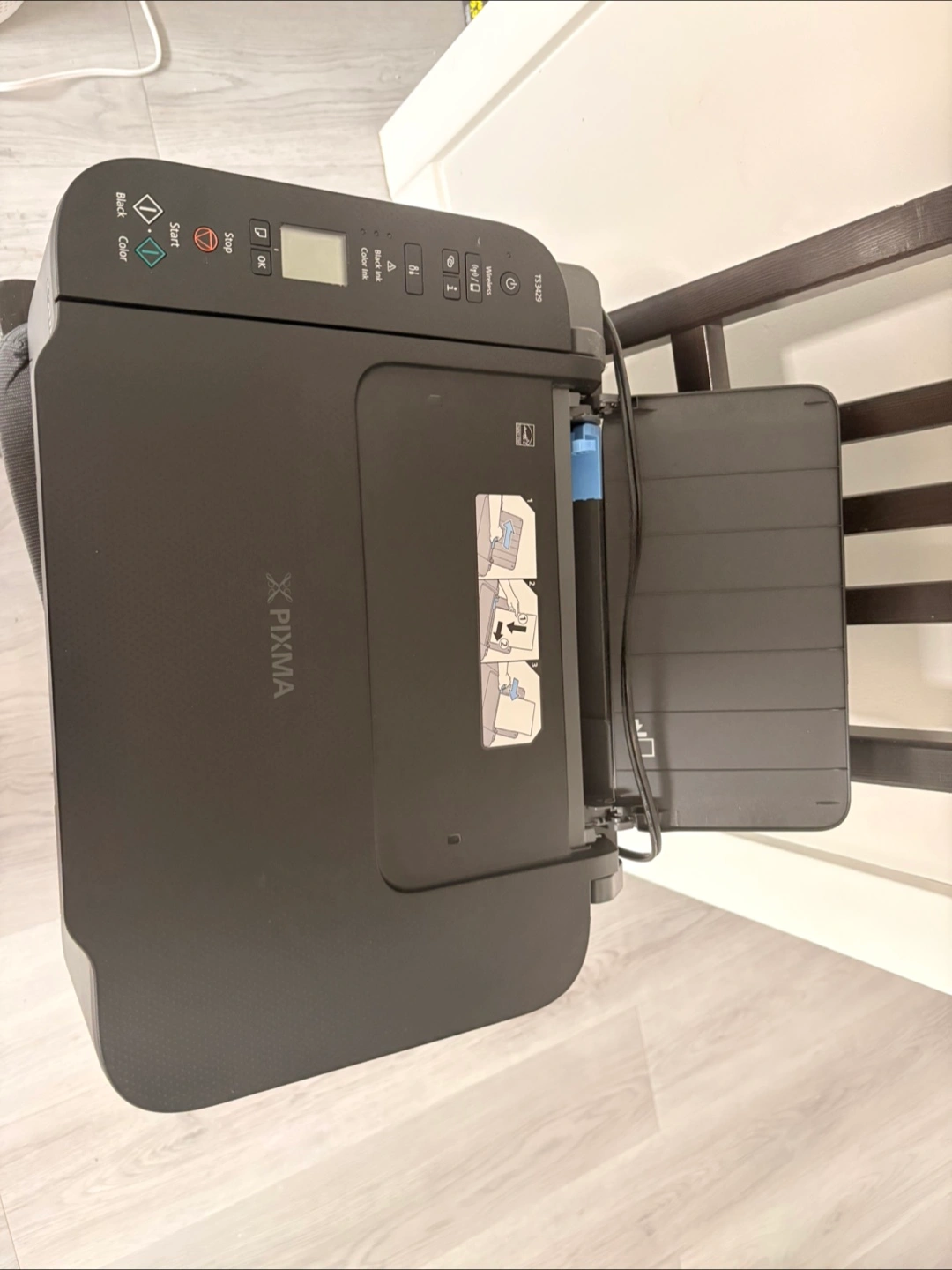 Can also scan documents with the scanner lid. A great choice for printing documents and photos at home. Probably used this one only for 6 months, and never again after the ink ran out. Selling cause i’m no longer a student and no longer need to print stuff.
