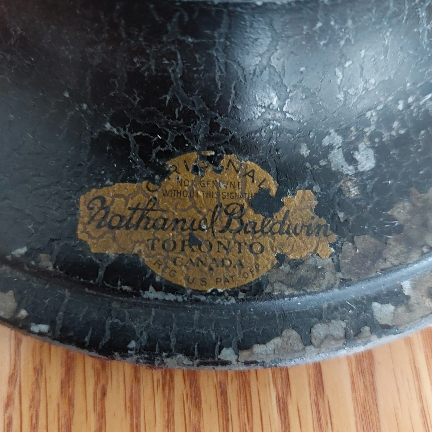 Vintage Nathaniel Baldwin horn speaker from Toronto, Canada. Black horn with a textured finish. It's an original piece with some signs of wear. This horn is a classic audio component missing cord
