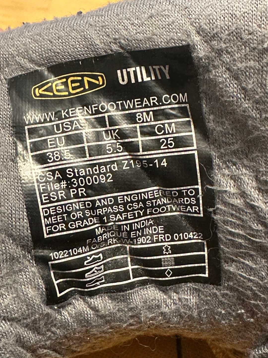 Selling a pair of KEEN Utility work boots in size 8M. These boots are CSA-approved and designed for work environments that require sole puncture protection and safety toe for impact resistance. They are black and appear to be in good condition!