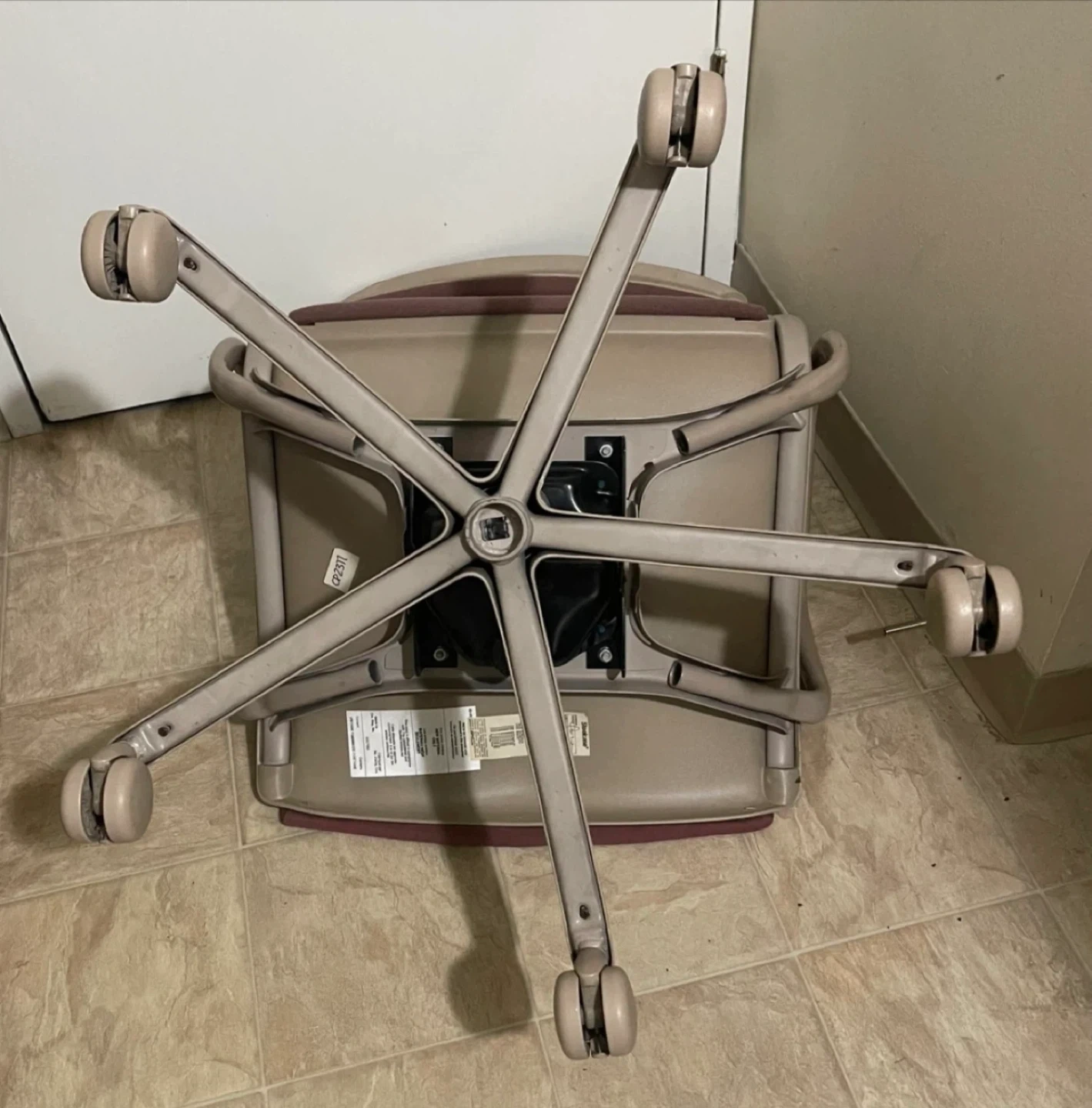 I’m giving away a comfortable, sturdy office chair. Burgundy fabric seat and back. Beige metal frame and armrests. Five caster wheels. Features swivel functionality and rolling casters. Perfect for home office use or student use. The chair was stored in the storage room, and as shown in the first picture, the burgundy fabric seat colour has faded slightly. Adding a chair seat slipcover will make it look brand new. It’s in a very good condition, with no damages at all. From smoke-free, pest-free, and pet-free home.