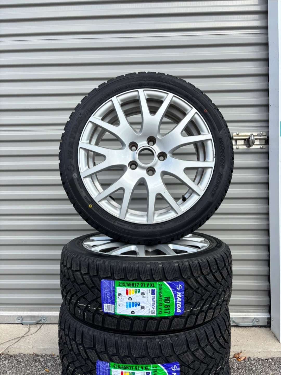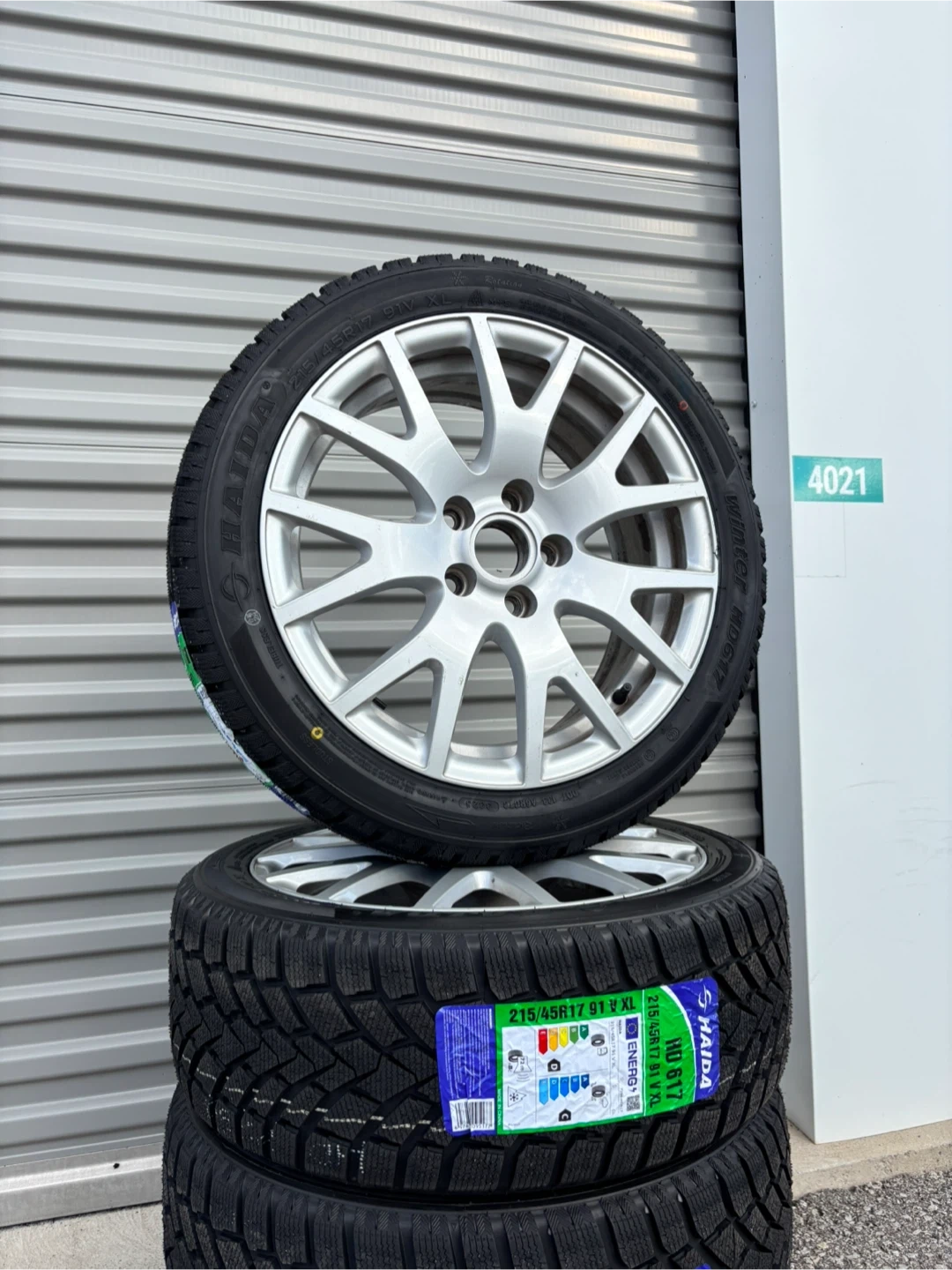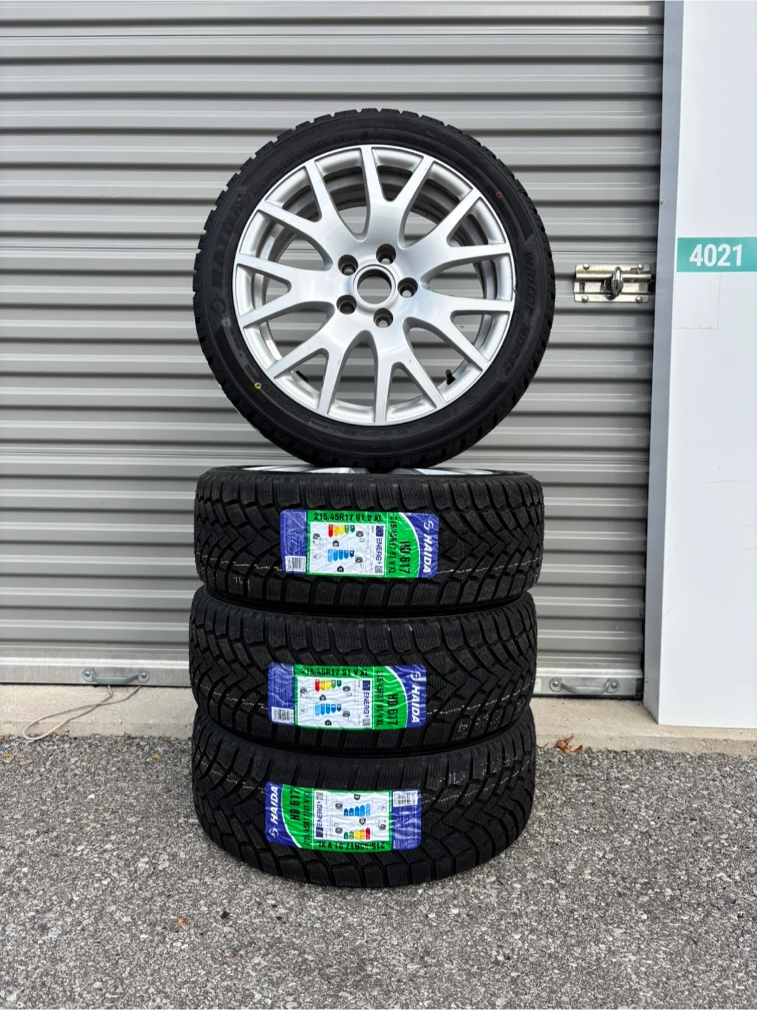 15Selling a set of Oem Audi rims with new winter tires. 5x112 bolt pattern 57.1 hub bore 17x7 47 offset No bends cracks or curb rash. Minor scratches. 215/45R17 Haida HD617 winter tires, brand new. 2025 DOT. just mounted and balanced without any issues. Ready to mount to your vehicle. Serious inquiries only, pickup only Kennedy and mayfield caledon.