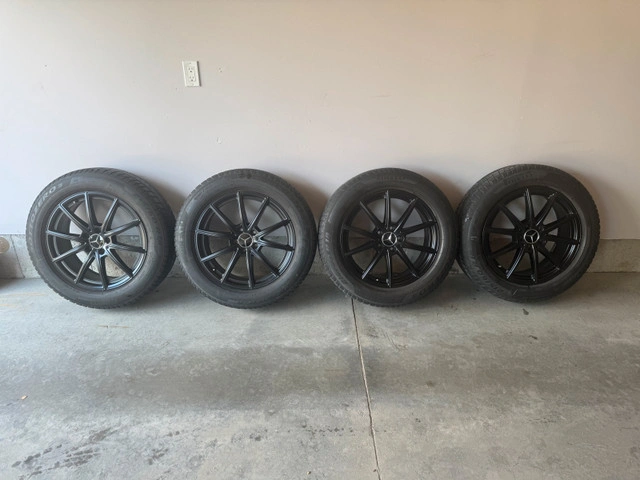 Wheels: • OEM Mercedes-Benz, Part No. A1774010700 • Size: 18” x 7.5J, Offset ET50, 5x112 bolt pattern • Center bore: 66.6 mm • Finish: Gloss Black • Manufacturer: Maxion Wheels – Made in Czech Republic • Excellent condition, no cracks or bends Tires: • Pirelli Winter Sottozero 3 • Size: 215/60 R18 98H M+S • DOT date: 2020 (used for 3 winters) • Even wear, plenty of tread left • Winter performance rated for snow and ice (3PMSF symbol)