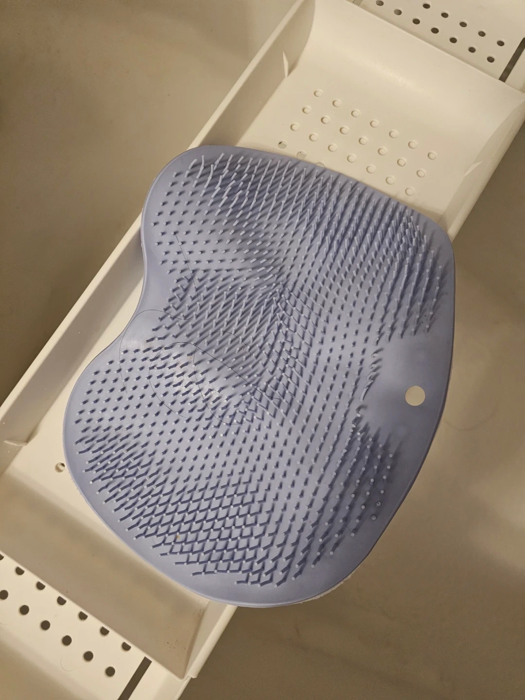 This is a blue silicone foot scrubber and massager.