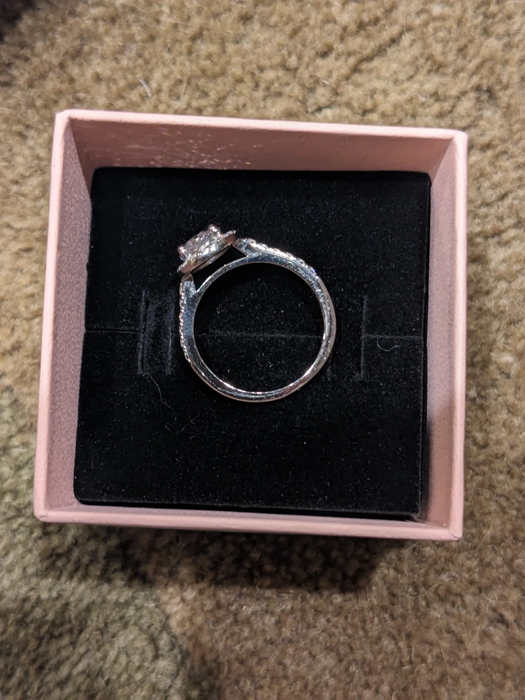 Beautiful oval halo ring featuring a central 1.5CT Cubic Zirconia stone surrounded by smaller accent stones. The ring is crafted from 925 sterling silver. Brand new, only worn to try on. Size 5. Price is firm.