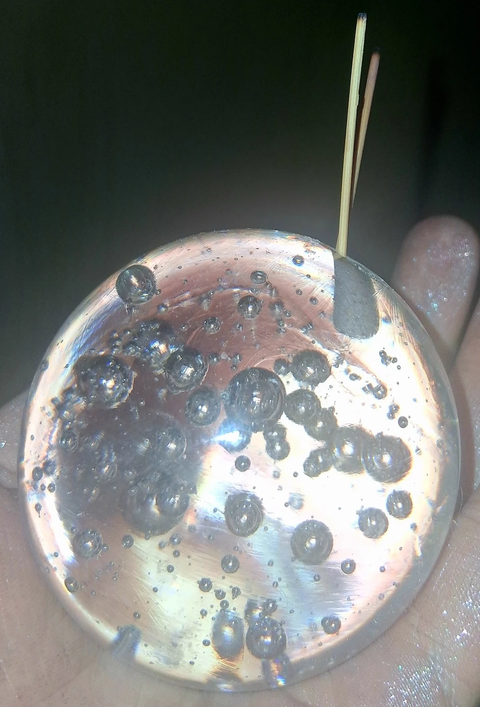 Glass Paperweight with Bubbles Actually An Incense Stick Holder