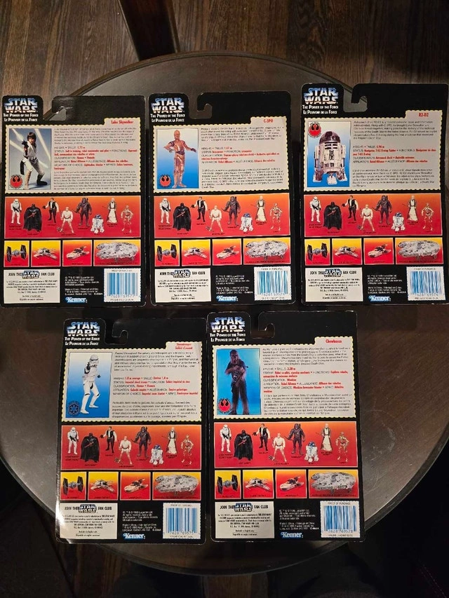Offering a collection of Star Wars: The Power of the Force action figures from the 1990s, still sealed on their original cards. A great addition to any Star Wars collection. Please note that as these are vintage collectibles, the carding is not in mint condition. Available figures include: Luke Skywalker, Han Solo, C-3PO, R2-D2, Stormtrooper, and Chewbacca. Priced at $10 each, or $50 for the lot. If the ad is up, the item is available. Cash accepted.