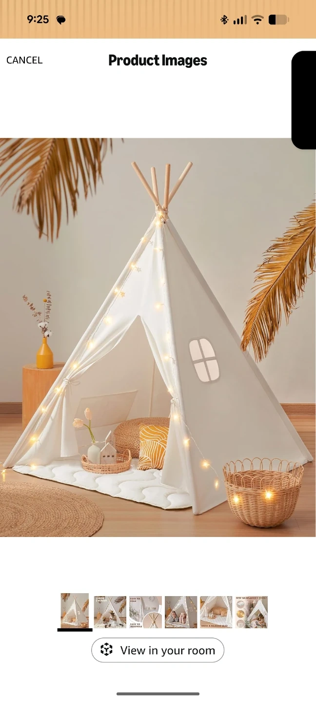 Buy & SellKids Teepee TentKids Teepee Tent$34A white canvas teepee tent for kids, no string lights. Bought on Amazon for $90, only used a handful of timesConditionLike newWHERE TO MEETCheck LocationView MapSELLERDanielleIngersoll50 reviews0 chats·0 favorites·6 viewsSEND CHAT TO SELLERHi Danielle! I’m interested in your listing.Hi Danielle! I’m interested in your listing.Get the Karrot app to chatSign In to chat