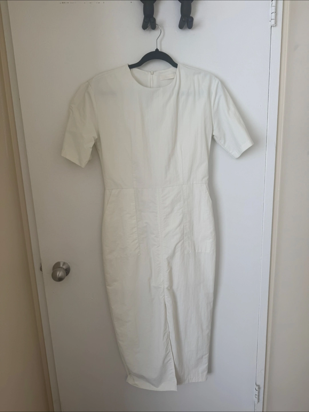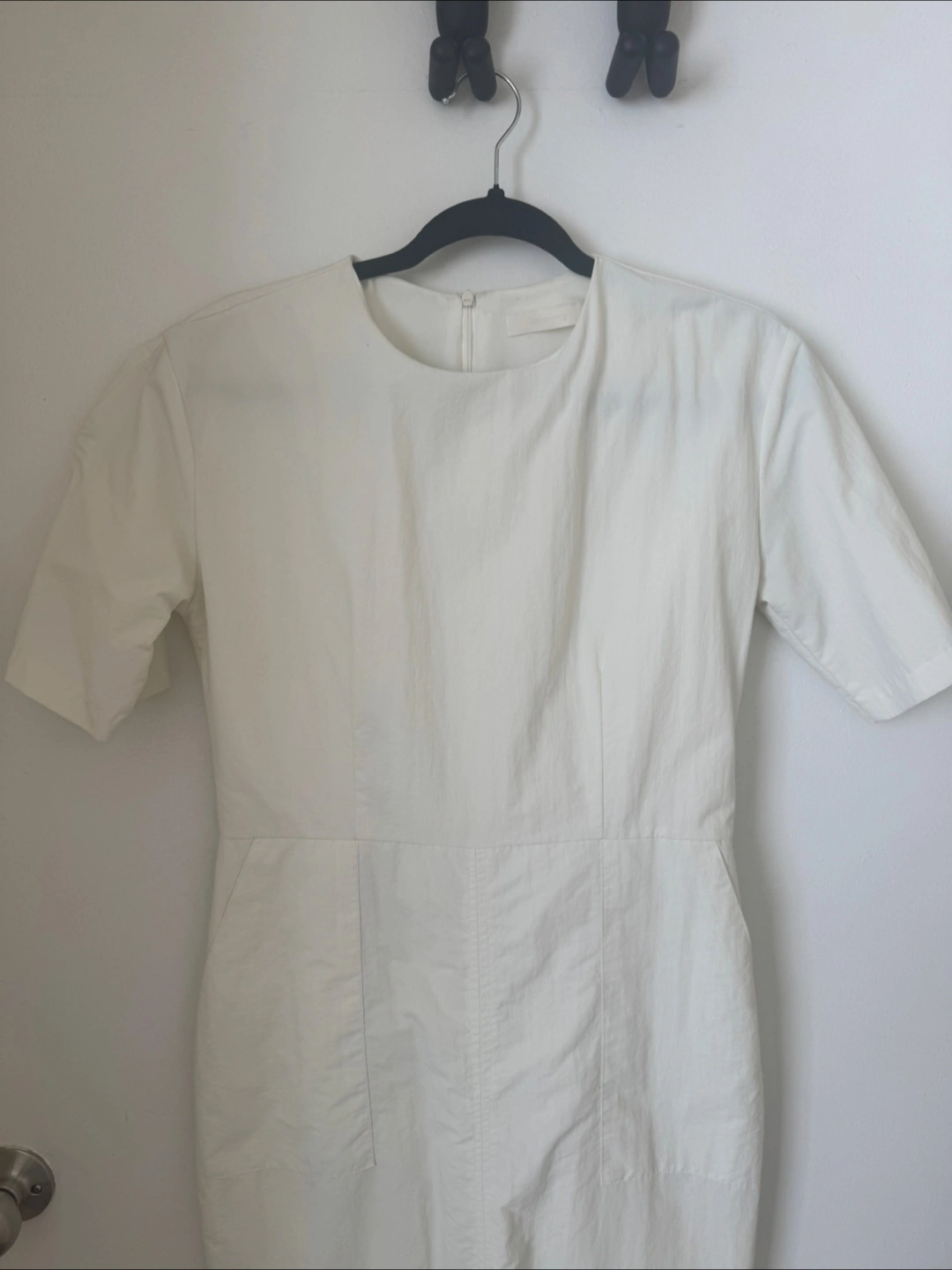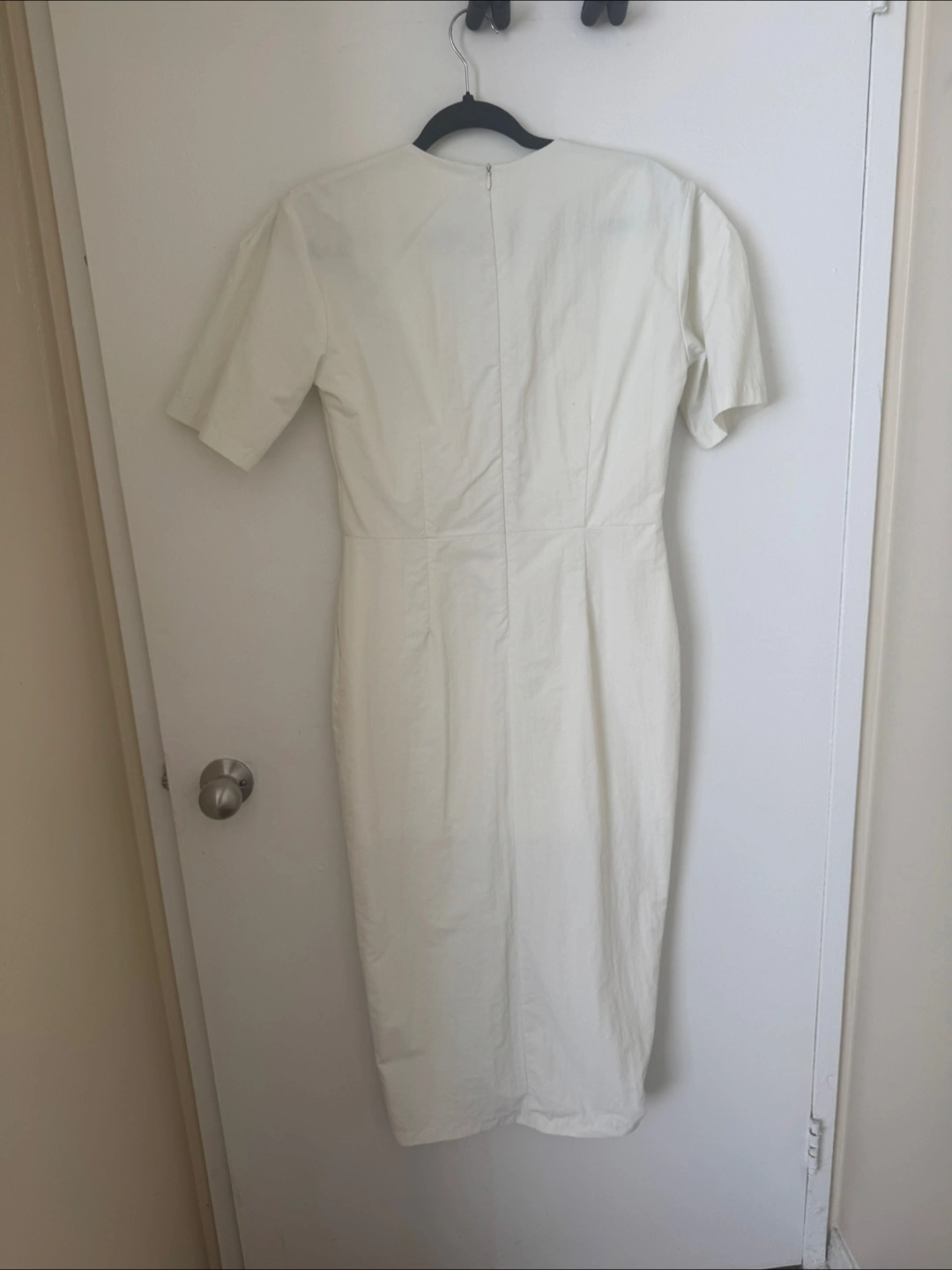 Selling a stylish off-white midi dress. It's in great condition and perfect for any occasion!