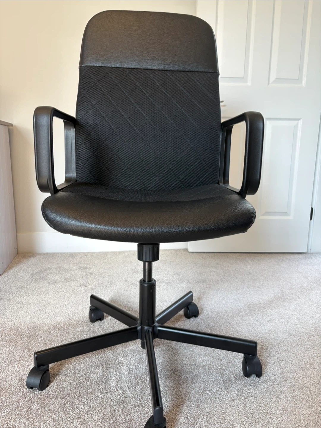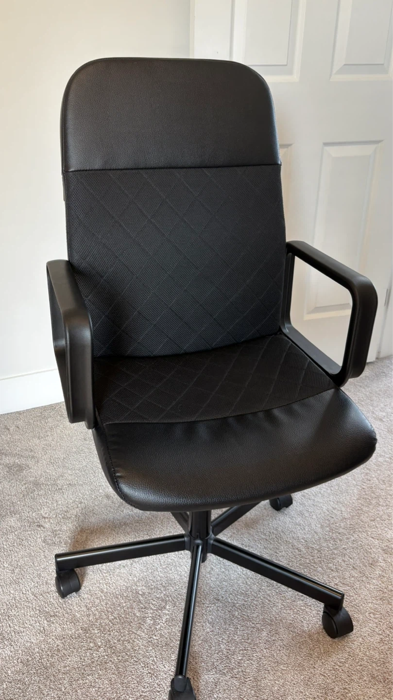Selling a gently used adjustable office chair in black. It's super comfy and in great shape. Perfect for your home office or study space! The chair is known for its high back and ergonomic design, providing excellent support for long hours of work or gaming. It's a great addition to any workspace