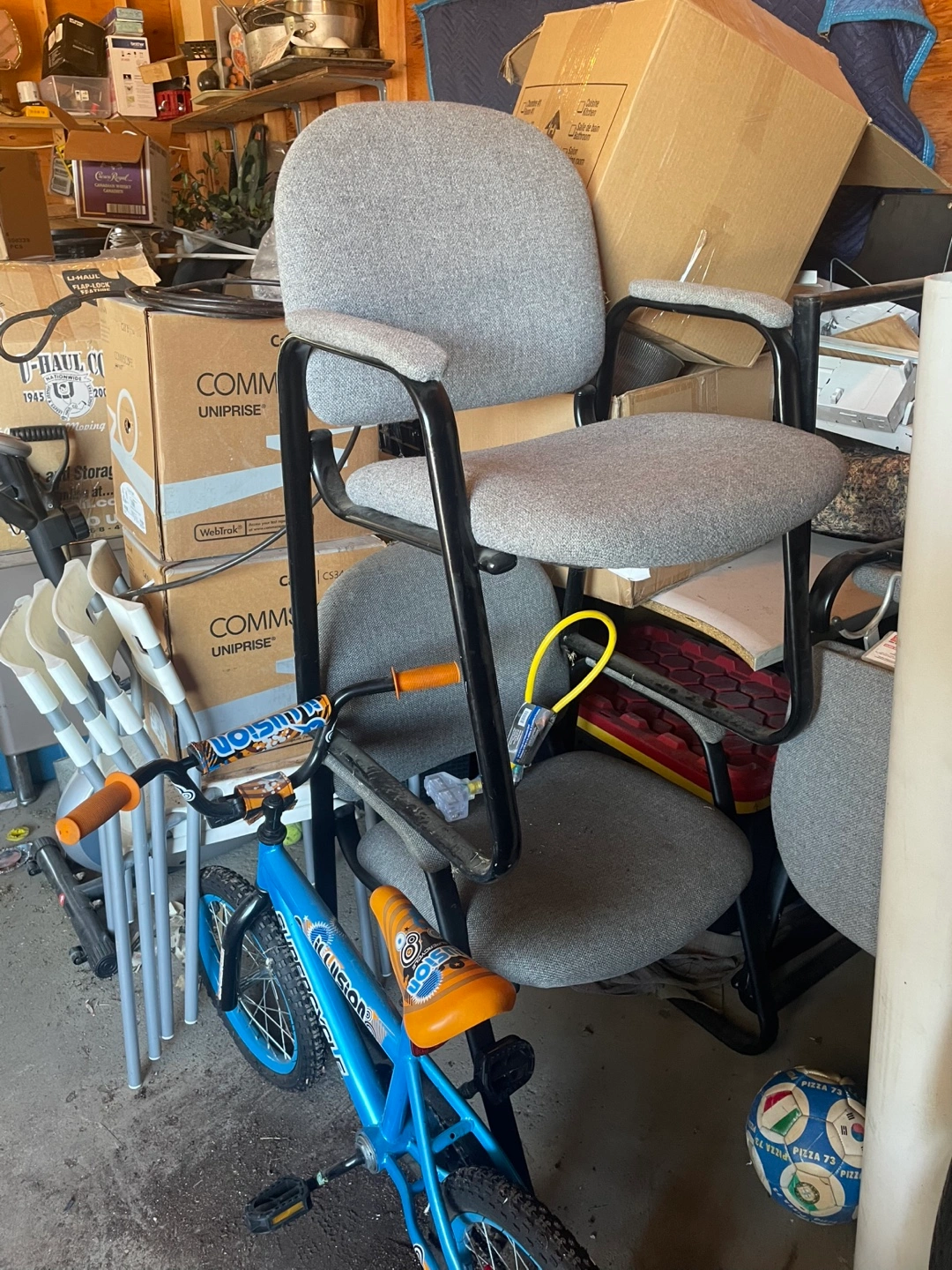 I have 5 office chair with armrests, in good condition. Perfect for your home office or study space. The chair is a neutral grey colour and would fit well with any decor