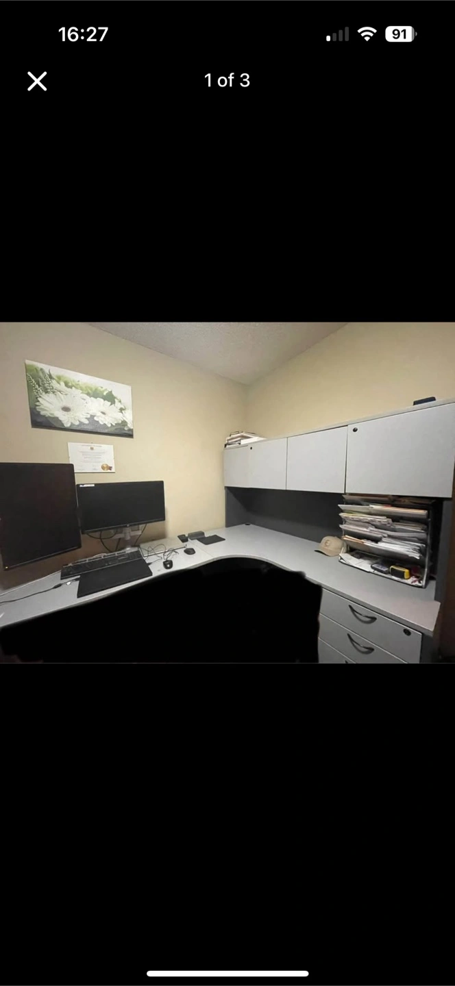 Selling an L-shaped office desk that's perfect for creating a functional workspace in your home or office. It comes with a hutch for extra storage, helping you keep your desk organized and clutter-free. Check out the photos for dimensions!