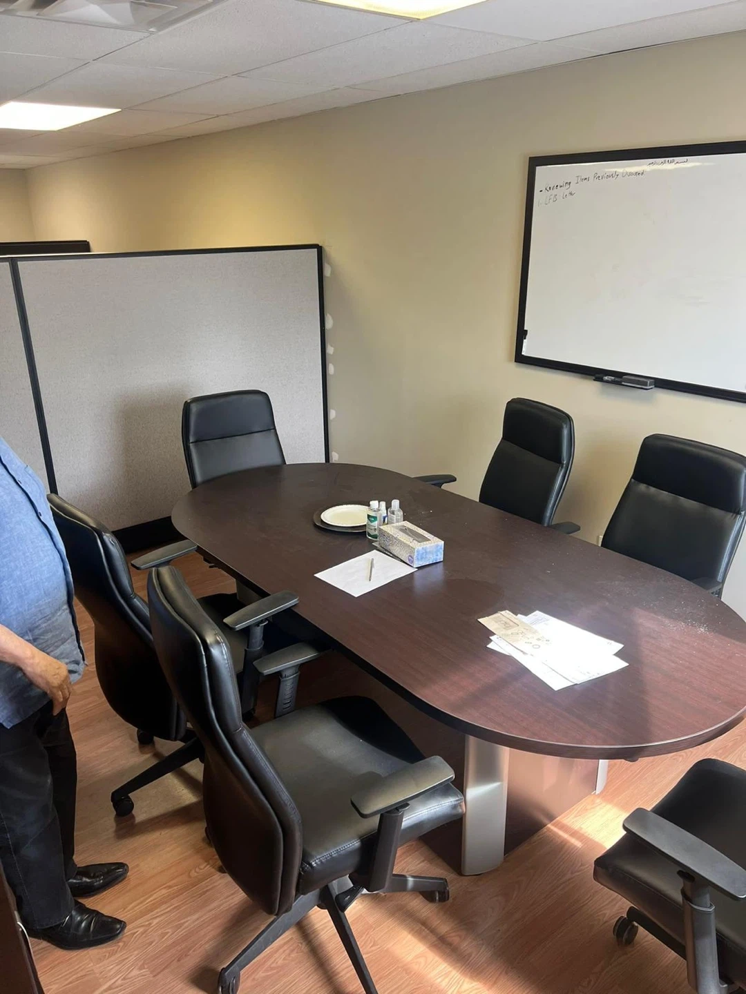60Selling entire office furniture, office desks with a hutch, along with other office furniture. It's a great setup for a small business. The desks has plenty of workspace and storage, and the cuboard shelves provides additional shelving. Also available are office chairs and a conference table. All in good condition without scratches or dents and ready for a new owner to use. Pickup after 5th Nov.