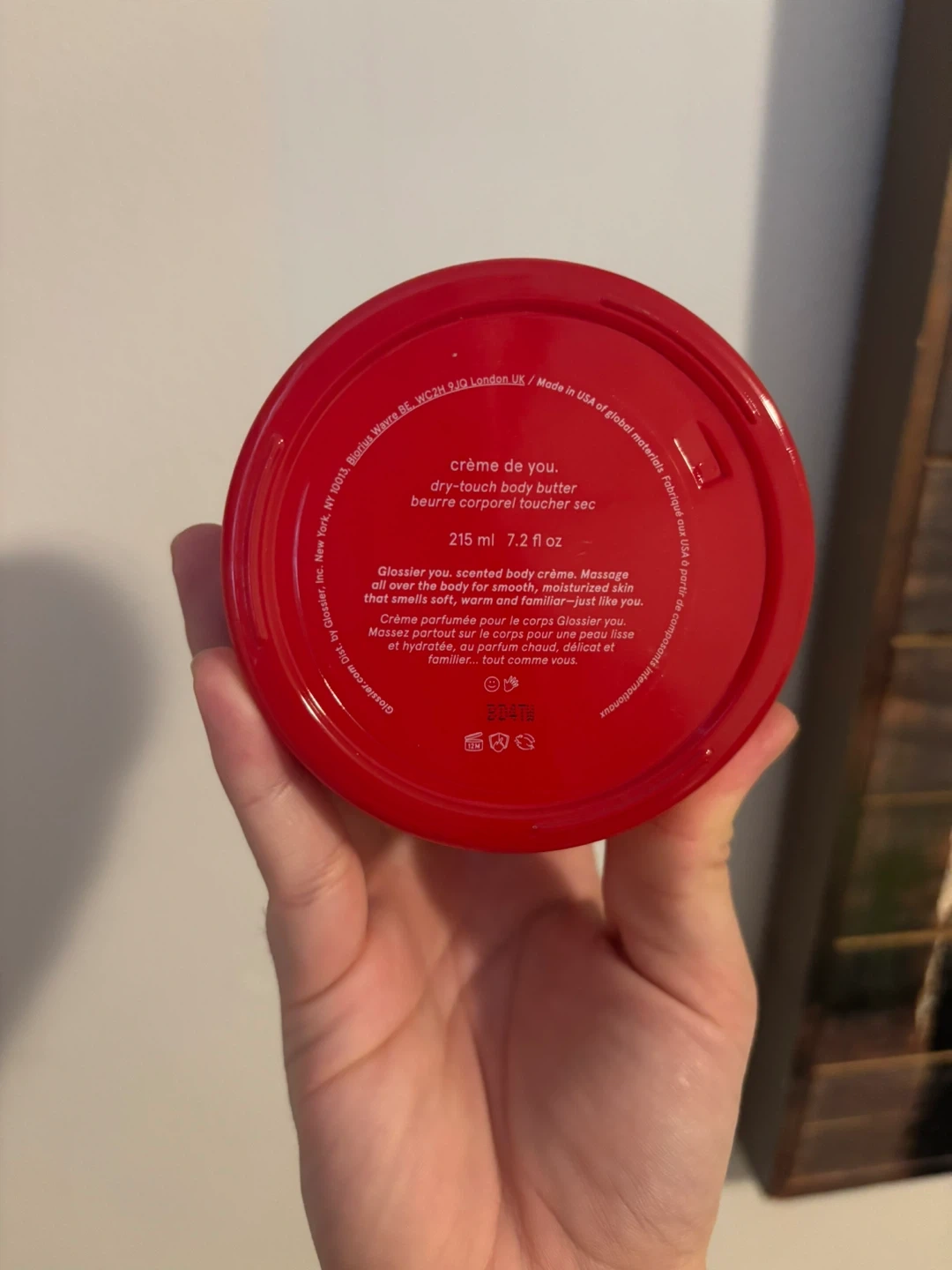 Glossier Crème De You dry-touch body butter. It's a scented body cream for smooth, moisturized skin. Massage all over the body for removal. 215 ml size.