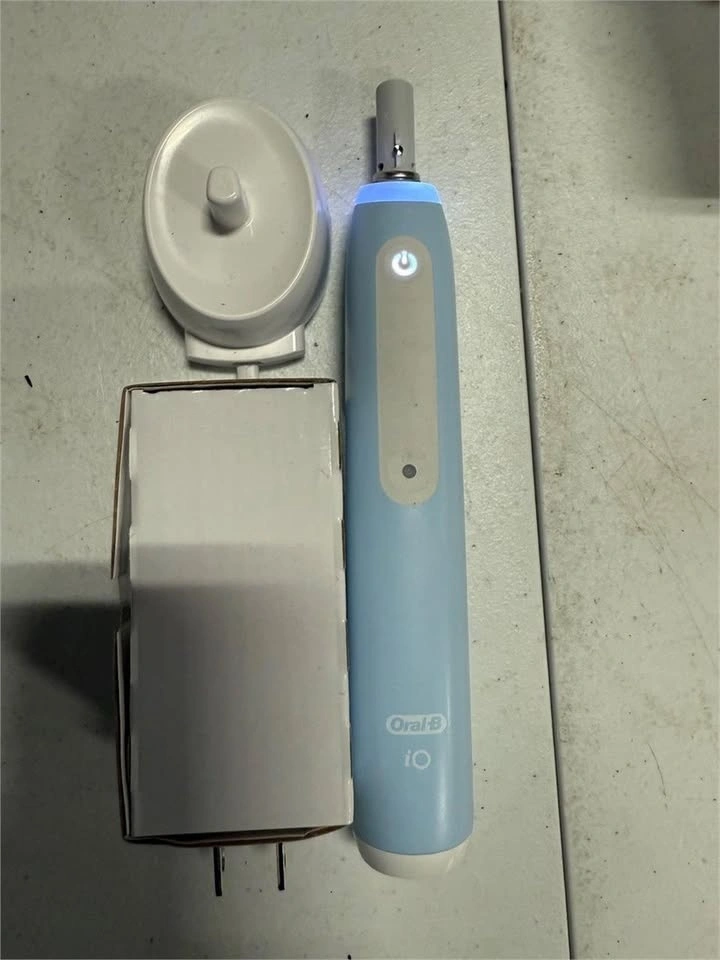 NEW in opened package. You will receive (1) Oral-B iO3 Electric Toothbrush, (1) Ultimate Clean Replacement Brush Head, and (1) charger. Clinically proven to remove 400% more plaque along the gumline vs. a regular manual toothbrush. Features 3 Smart Modes for personalized brushing: Daily Clean, Whiten, Sensitive. Includes a 2 minute timer for a complete clean. Pressure sensor indicates optimal cleaning pressure and warns of over pressure.